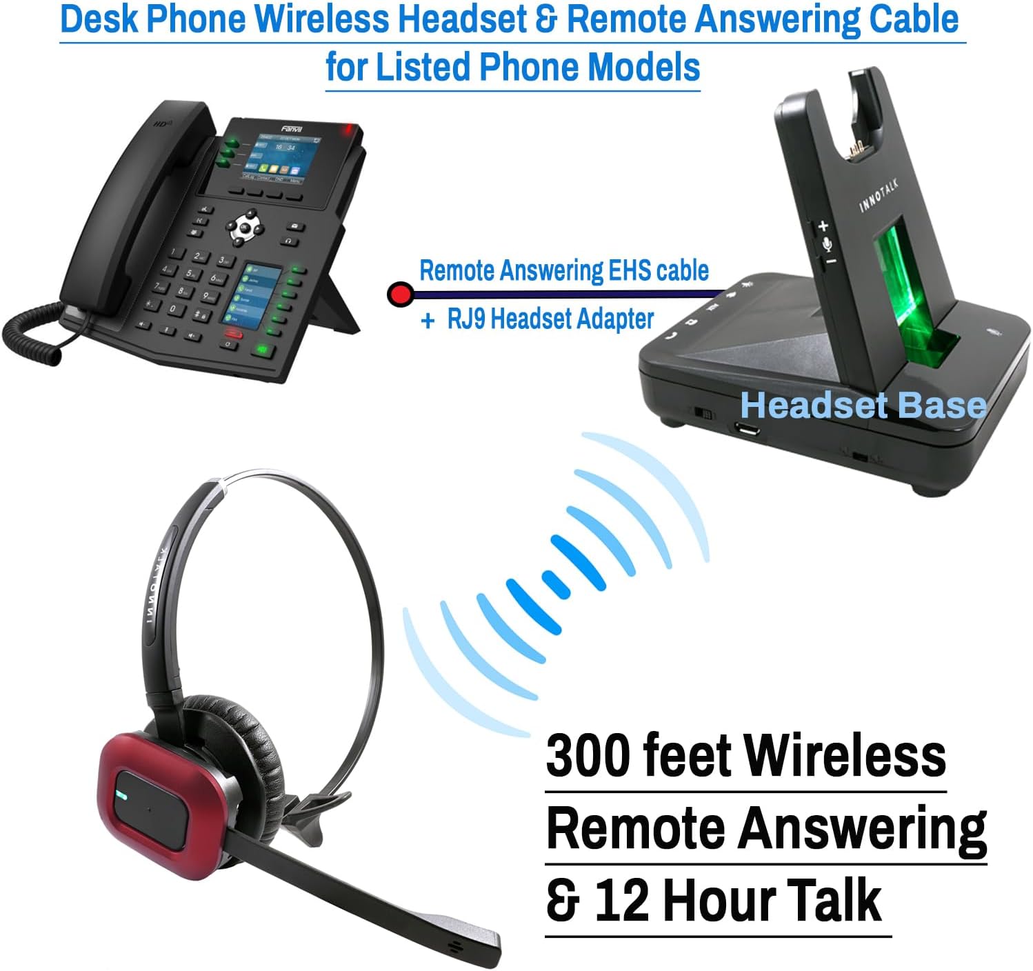 Home Call Center & Office Accessories Busy Lights INNOTALK Wireless Headset – Includes Remote Answering Cable Compatible with Fanvil X4, X4G, X4U, X5U, X5U-R, X6U, X7, X7C, X210, X210i Phone