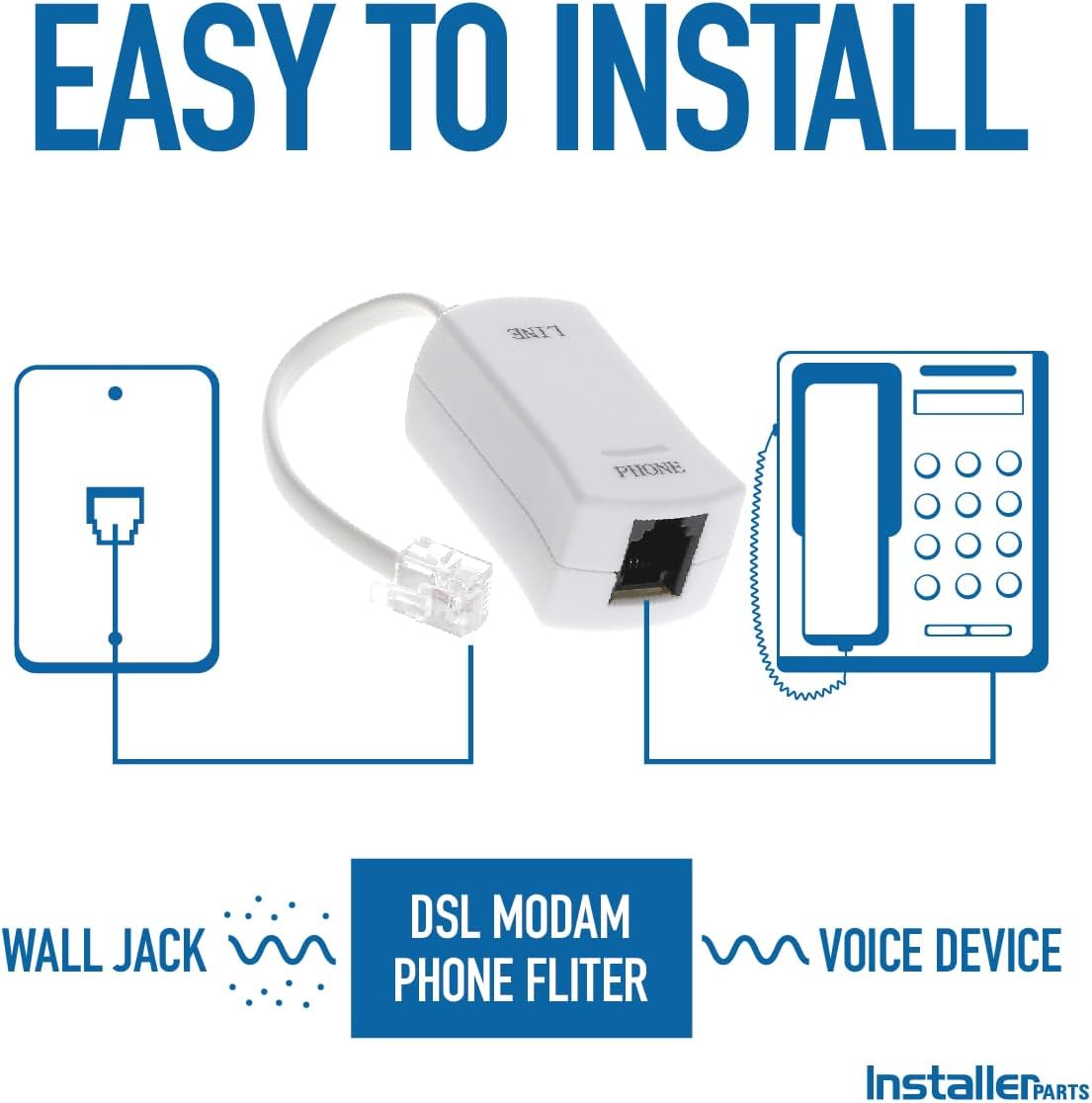 • InstallerParts DSL Modem Phone Filter – for Interference Elimination and Static Noise Blocker | for Answering Machine, Fax Machine, Telephones Landline Cordless | 10 Pack, White DSL Phone Filter