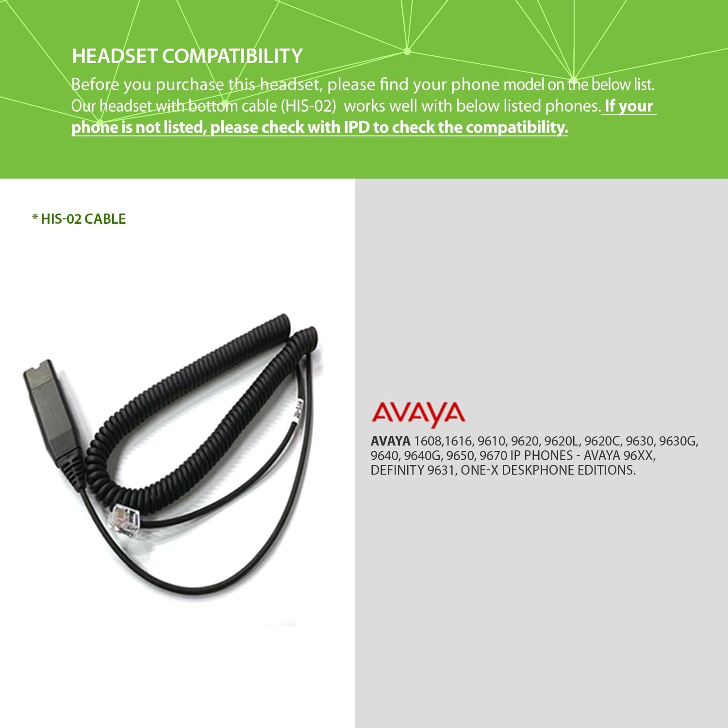 Before you purchase this headset, please find your phone – models on the below list. Our headset with bottom cable (HIS-02) works well with below listed phones. If your phone is not listed, please ask IPD for correct compatibility with your phone. HIS-02 Bottom cable with RJ9 Modular.