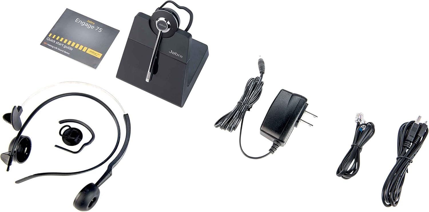 • Jabra Engage 75 Wireless Headset Bundle with EHS Adapter, 9556-583-125, Compatible with Cisco Desk Telephones, Webex, Bluetooth, Excellent for Calls and Video Meetings(Convertible – EHS – Cloth)