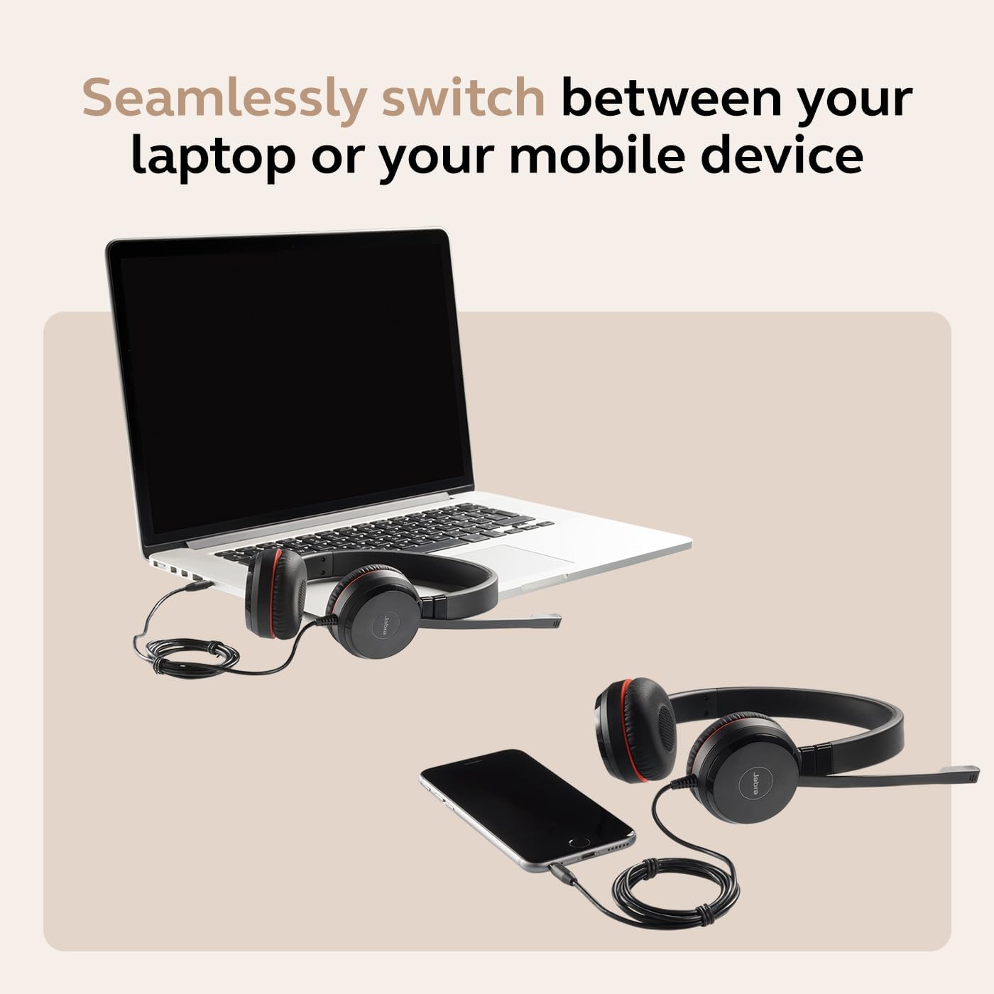 EASY CONNECTIVITY: Seamlessly switch between your laptop and mobile device using USB or 3.5mm jack for convenience