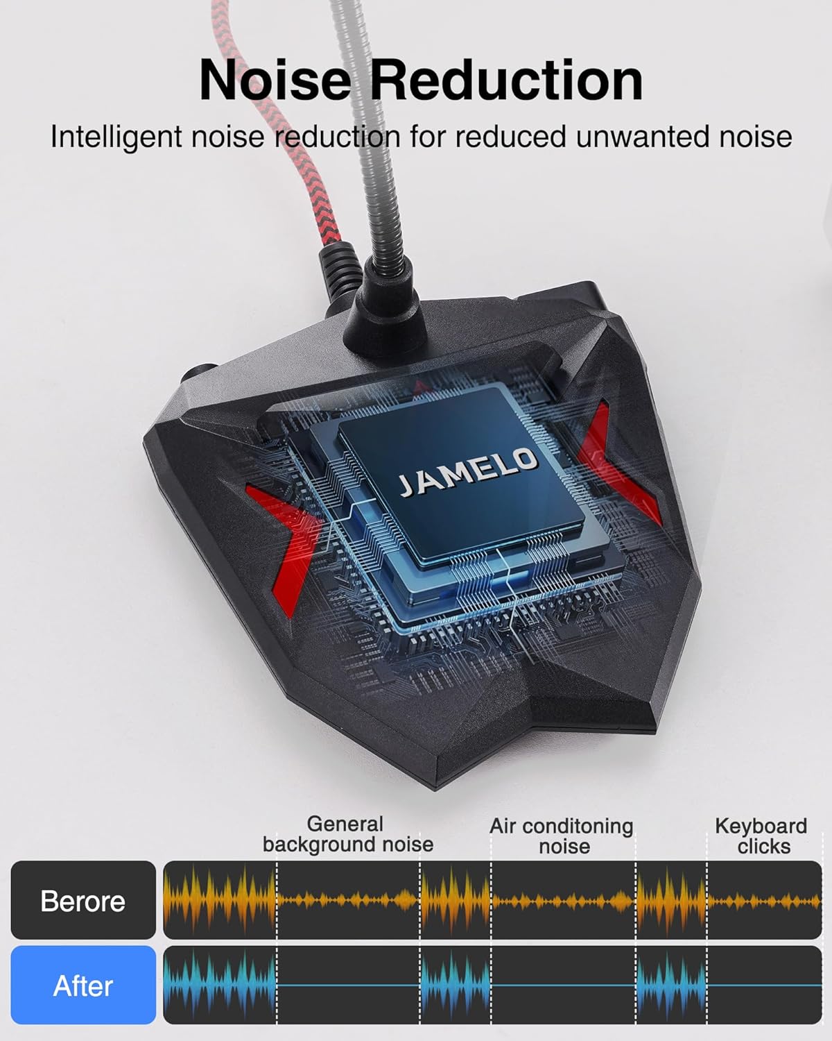 Be the first to review “JAMELO USB Computer Microphone, 360°Adjustable Gooseneck Design, Desktop Condenser PC Mic, Mute Button with LED Indicator, Plug & Play Compatible with Windows/Mac, Ideal for YouTube, Recording, Game” Cancel reply