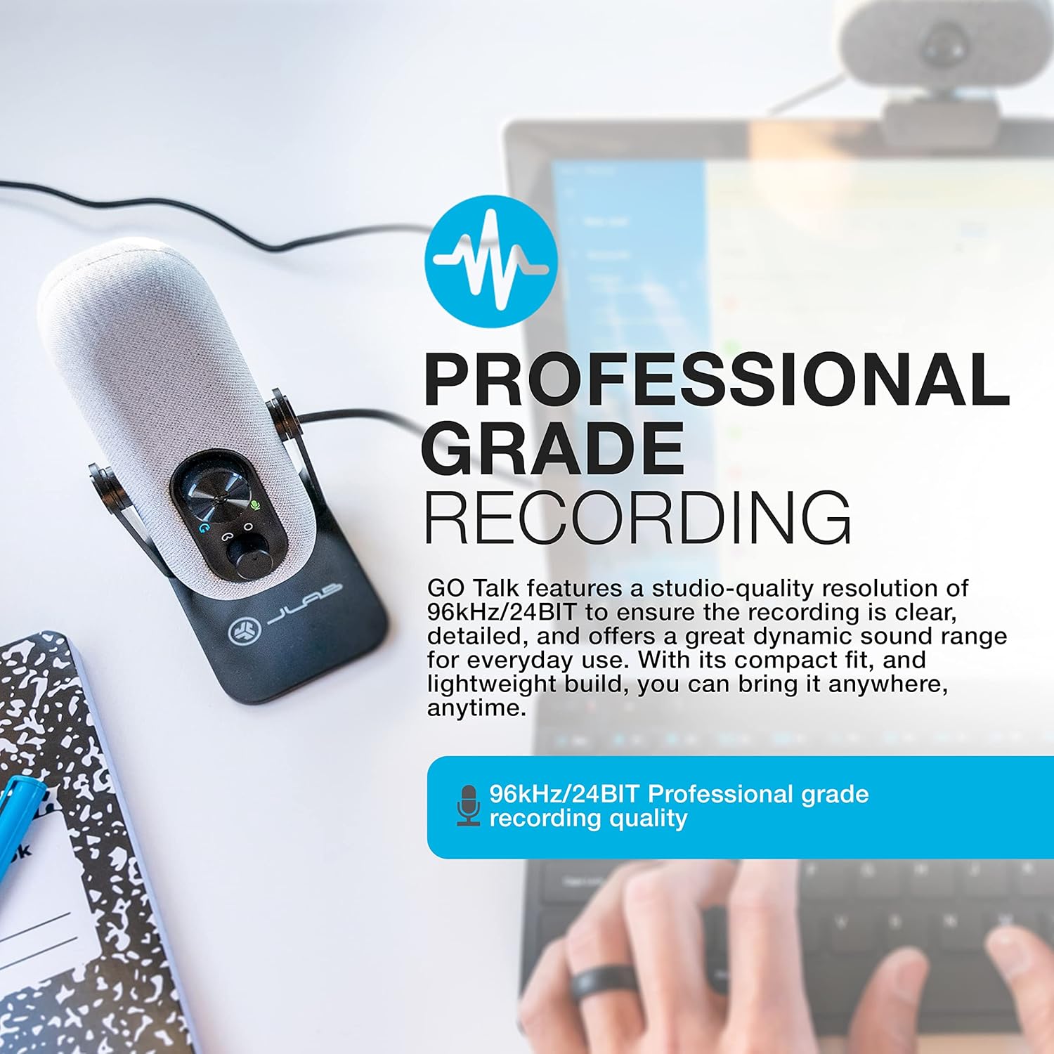 Home Microphones & Accessories USB Microphones JLab Go Talk USB Gaming Streaming Microphone, White, USB-C Output, Cardioid, Omnidirectional, 96k Sample Rate, 20Hz, 20kHz Frequency Response, Volume Control and Quick Mute, 3.5mm AUX, Plug and Play