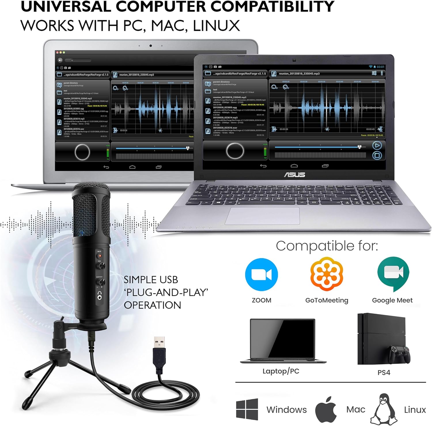 PLUG AND PLAY – This Computer Desktop Microphone features simple USB plug-and-play operation Simply plug it to your computer or laptop’s USB port select it as your input in your software settings and you’re ready to create your own audio