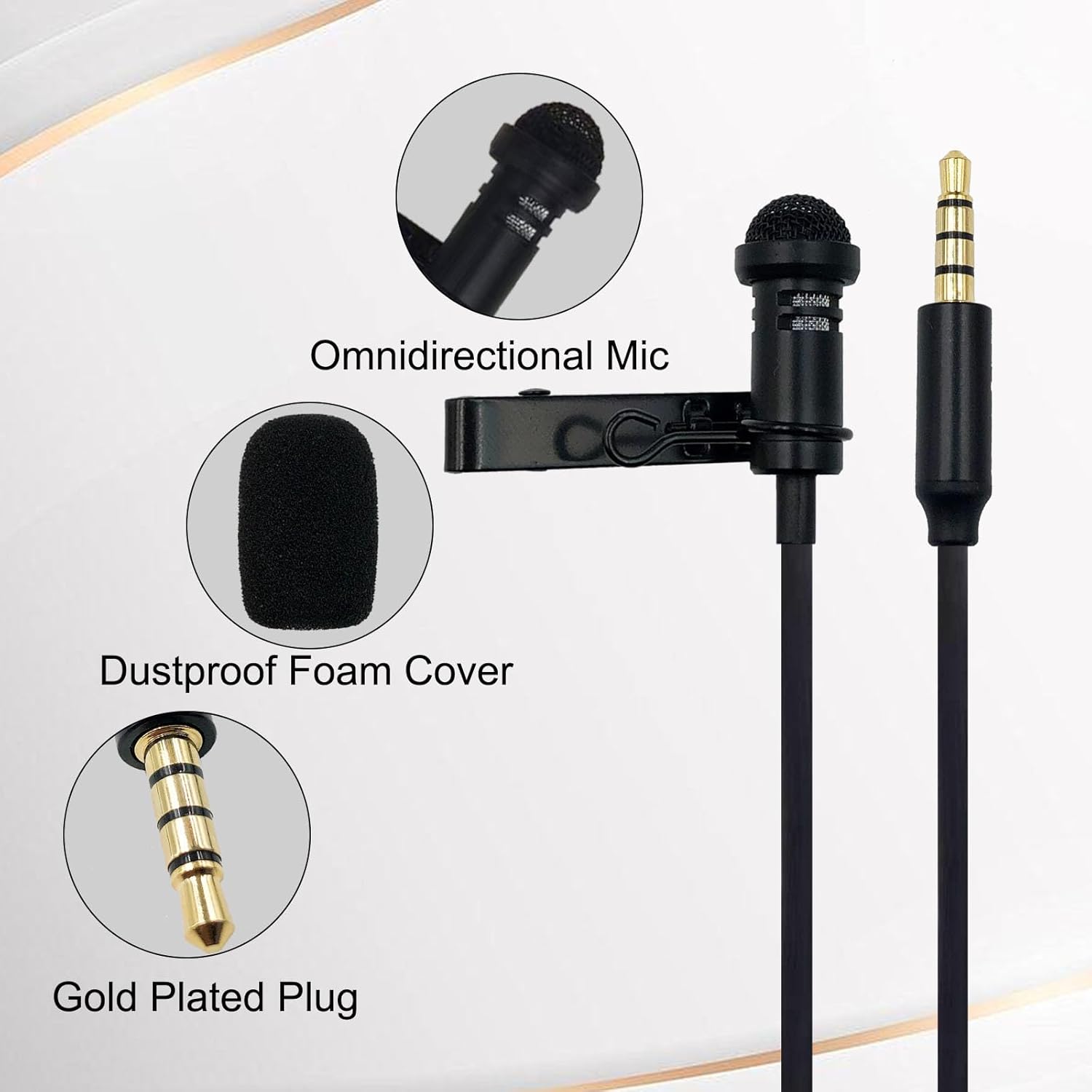 • Lavalier Lapel Microphone Omnidirectional Condenser Mic Compatible with iPad Mac Android Smartphones for Podcast YouTube Vlogging Recording Noise Cancelling Mic,3.5mm Black 5ft