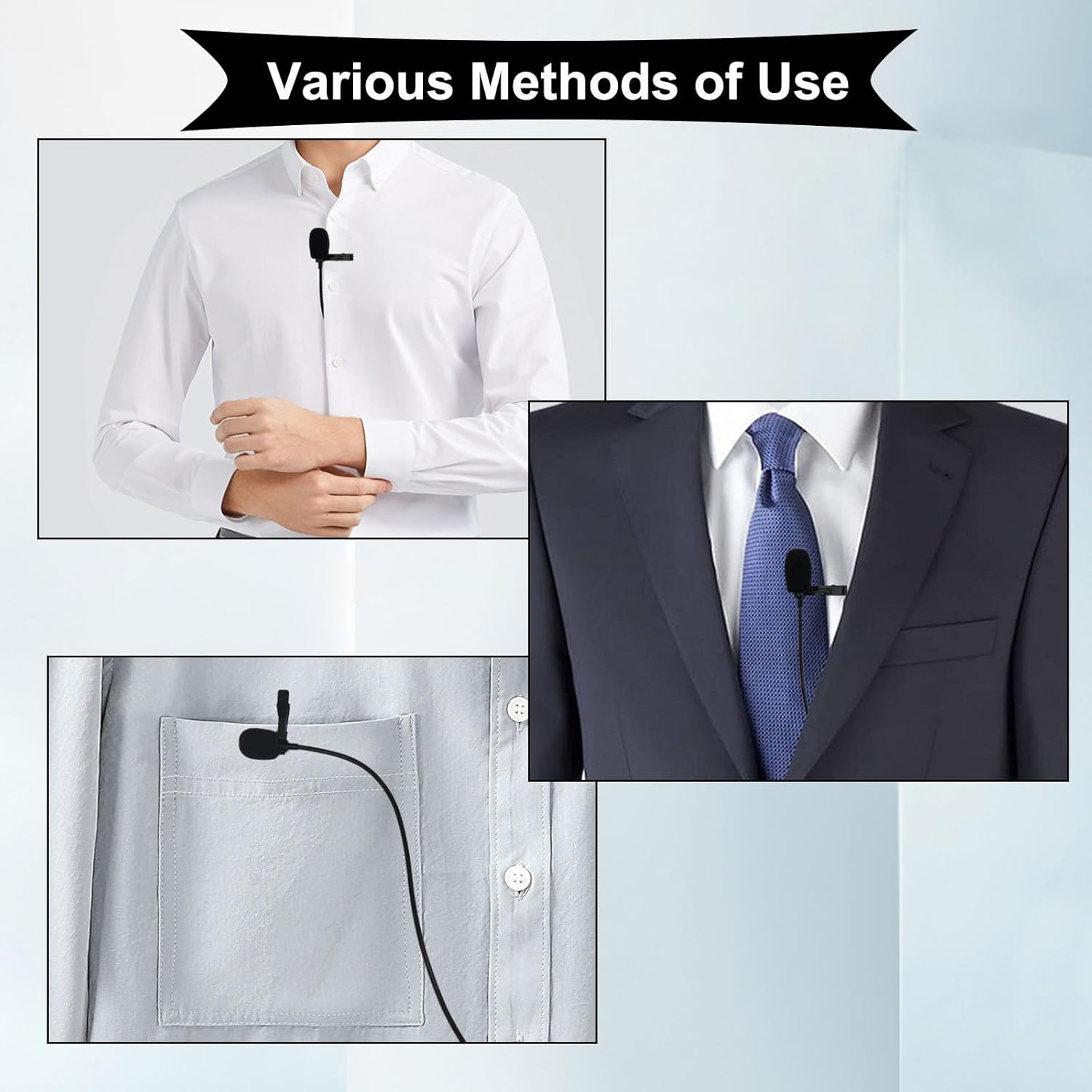 Lavalier Design:The sturdy mini metal clip allows you to attach it to your neck, tie or pocket.You can position the microphone easily freely to the mouth for maximum voice clarity.