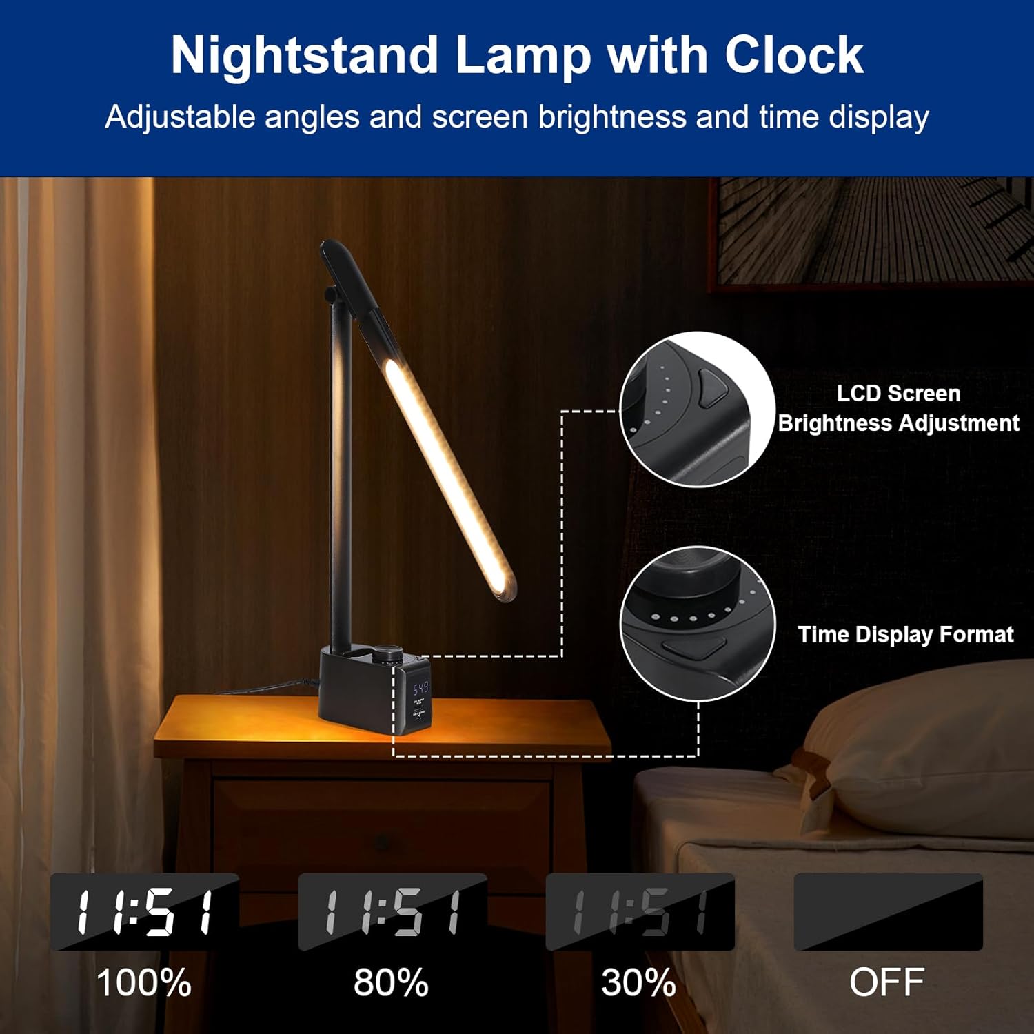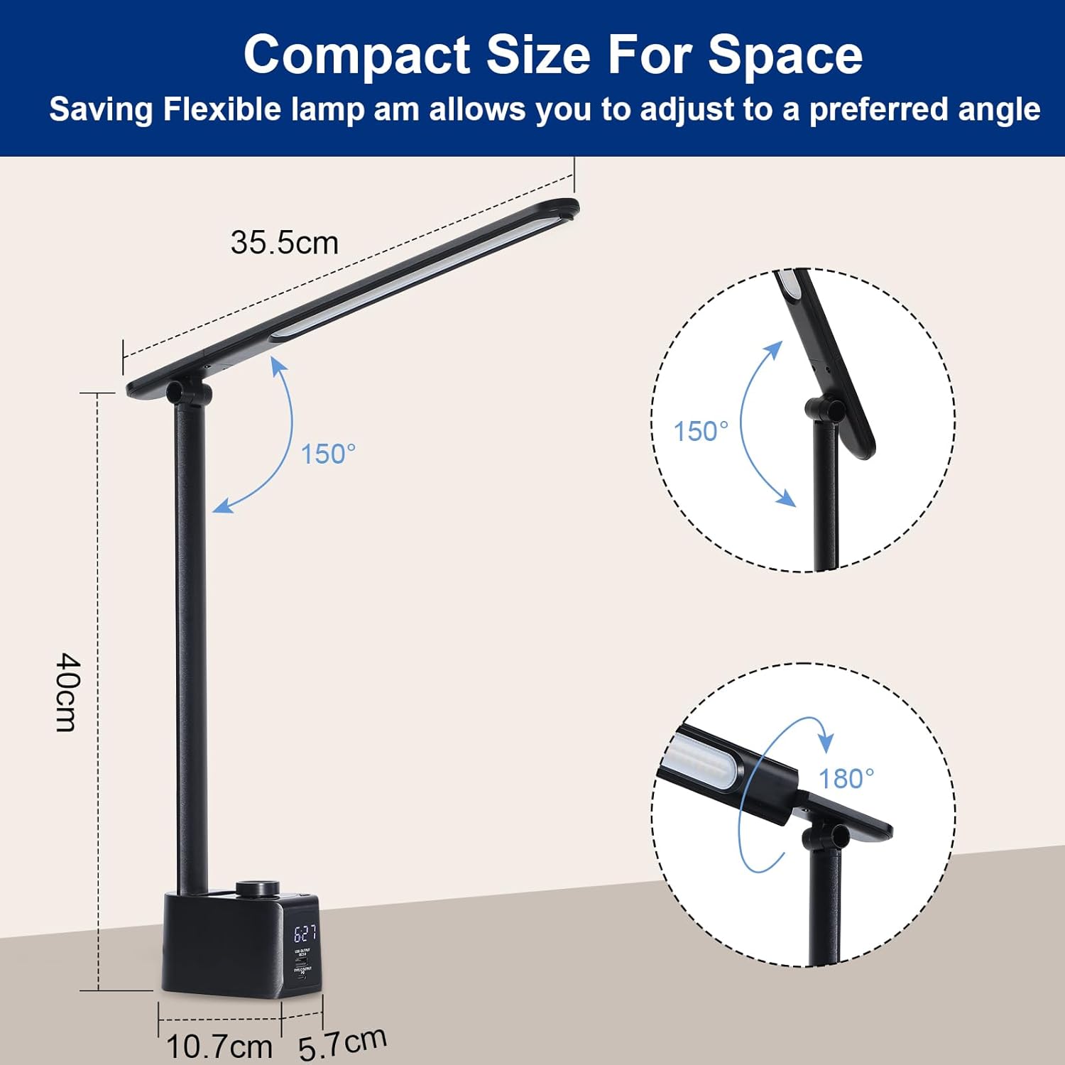 【Pen Holder and Smart Clock Display】 Our desk lamp with charger comes with a built-in pen holder, which provides comfortable lighting while organizing your daily work and study essentials eyes, pens, etc., saving you space and keeping your desk tidy. In addition, our led desk lamps is equipped with a smart time display to remind you of breaks or important meeting times – it’s easy to keep track of your schedule just by glancing at your desk light for desk.
