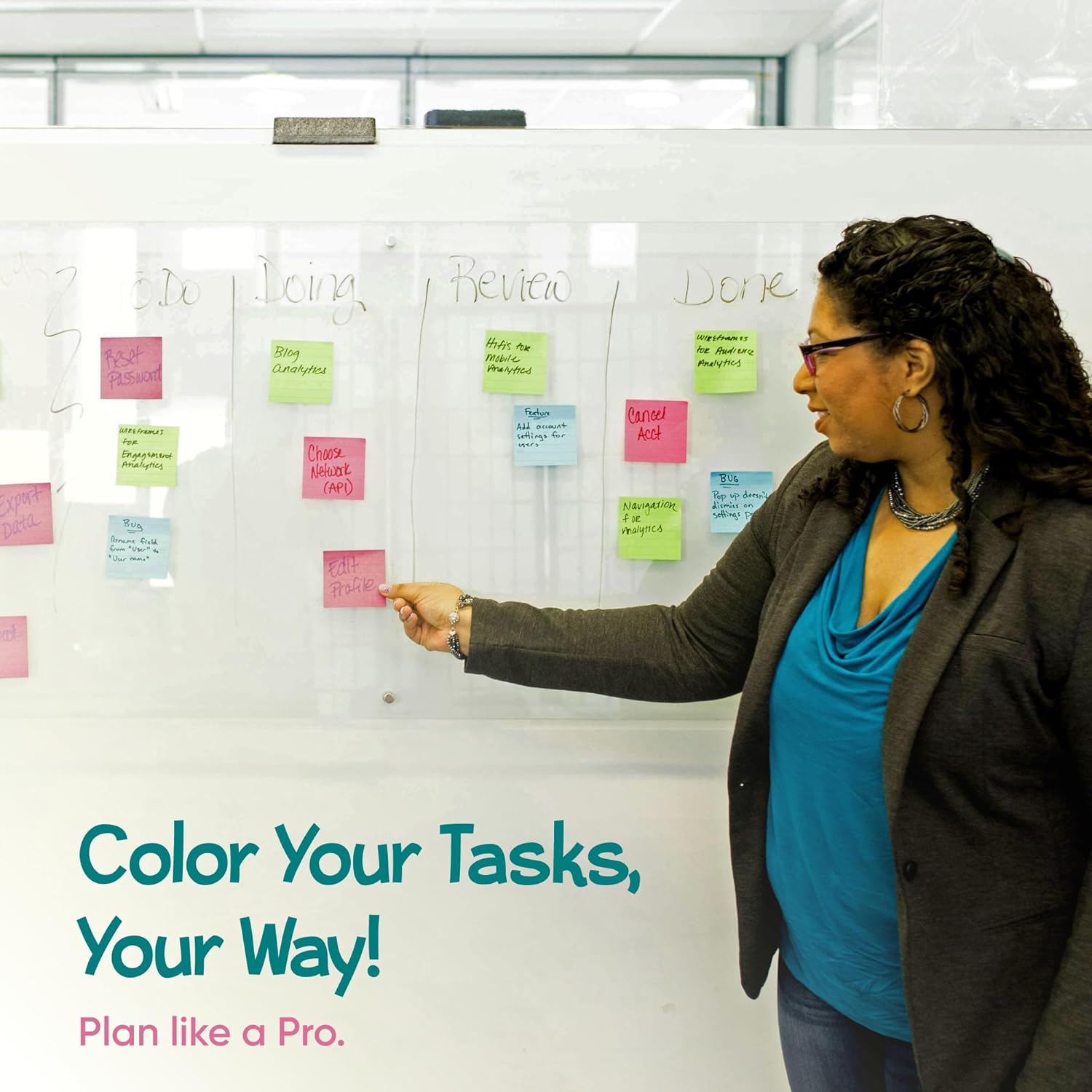 BRIGHT & ASSORTED COLORS: Includes a rainbow of eye-catching colors (like pink, orange, yellow, green, blue, and purple) to help you color-code your notes, prioritize tasks, and brighten up any workspace.