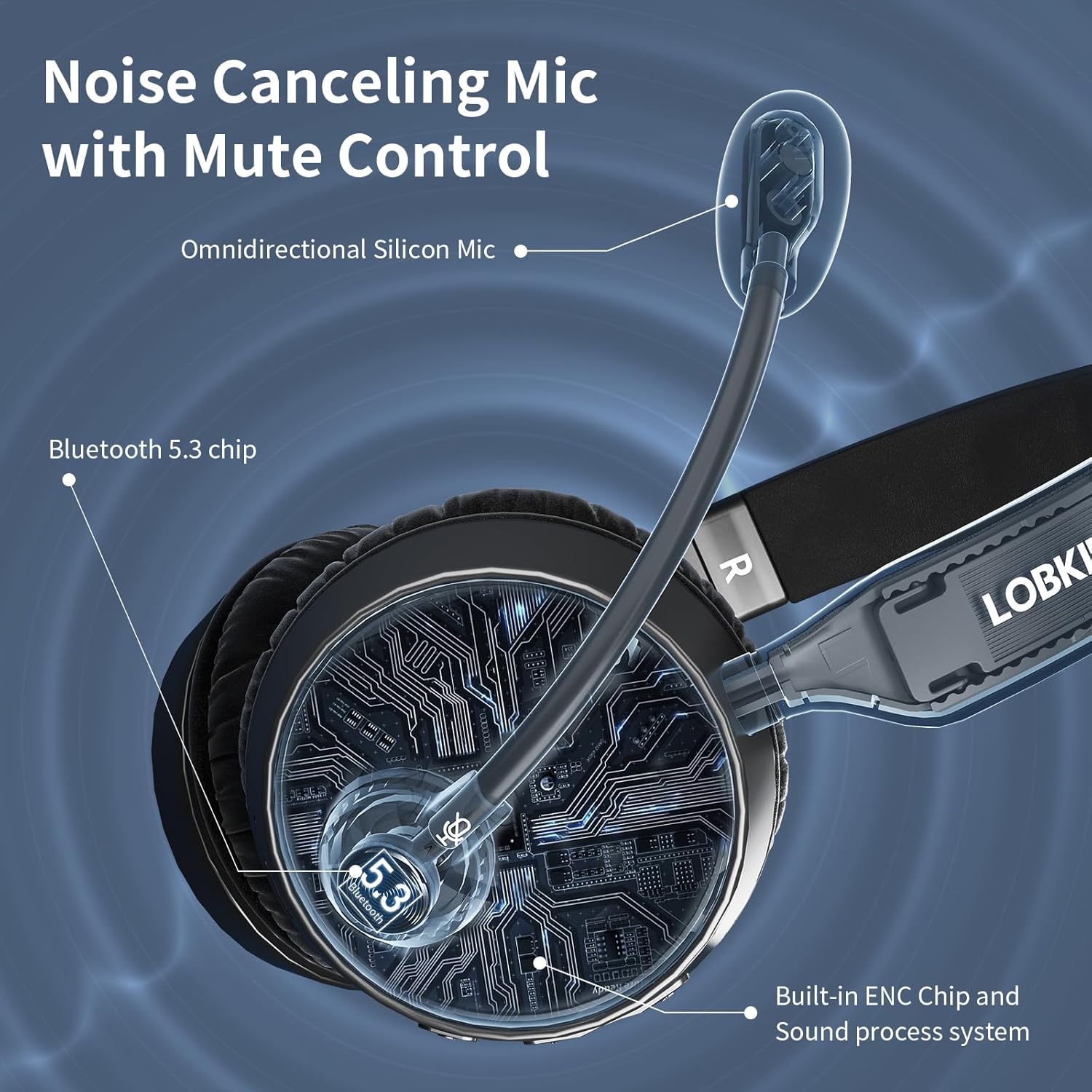• LOBKIN Bluetooth Headset with Microphone, Wireless Headset with Mic & Multipoint Connect, 60H Playtime Noise Cancelling Bluetooth 5.3 Headphones for Cell Phone/Computer/Laptop/Trucker/PC
