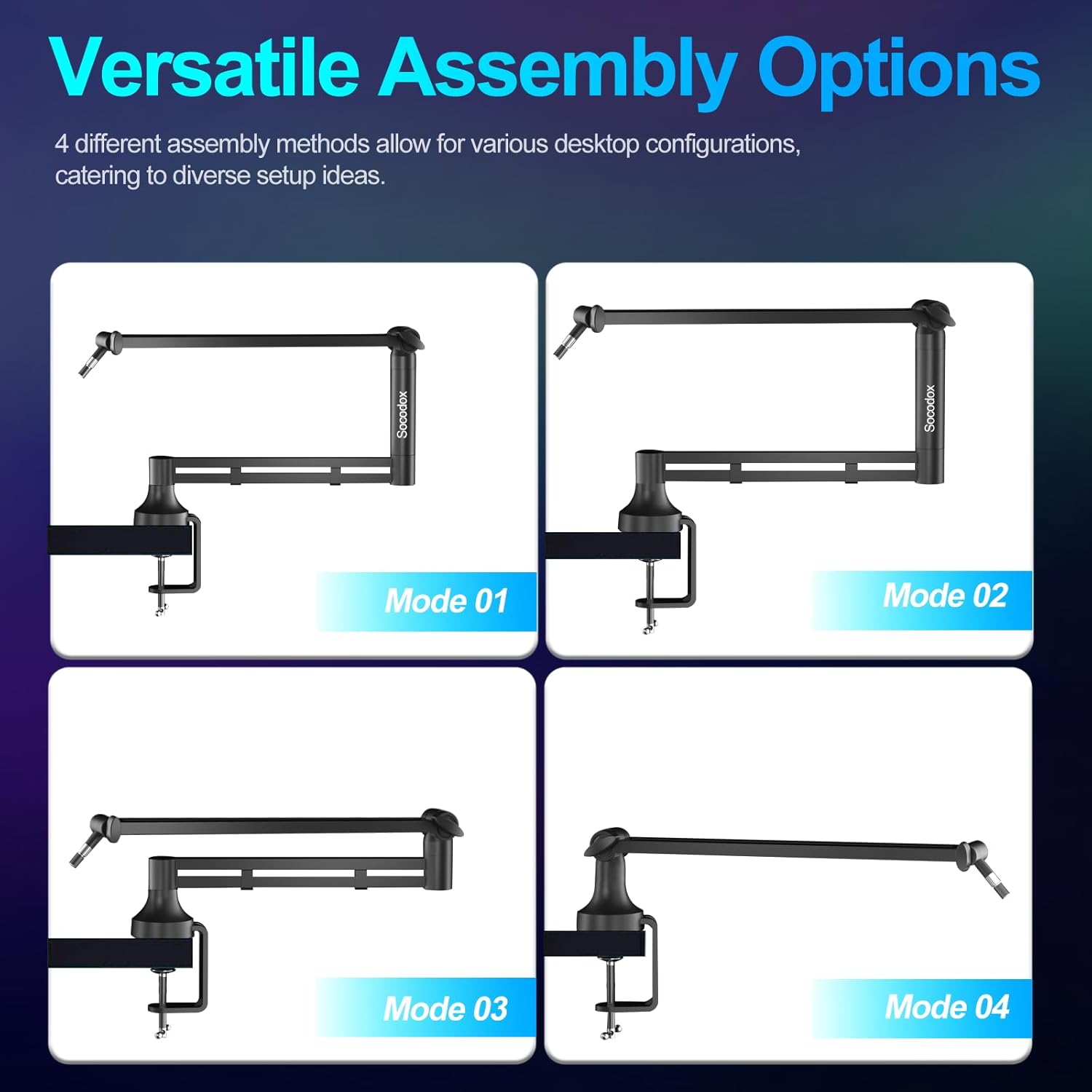 Universal Compatibility & Cable Management – Includes 3/8″ and 5/8″ adapters for wide mic compatibility. Integrated cable management keeps wires tidy for a professional look