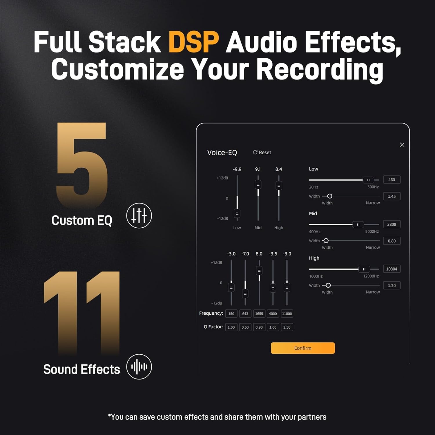 ENHANCE YOUR SOUND WITH ADVANCED SOFTWARE CONTROL: Maono Link personalized software allows you to customize your sound with ease. Activate noise reduction mode, adjust the 5-band EQ settings, and fine-tune microphone gain and monitoring ratio intuitively. With 11 built-in DSP effects and a memory function, you can preserve your carefully crafted sound profiles even when switching equipment. These user-friendly features empower you to perfect your audio online, taking charge of your sound
