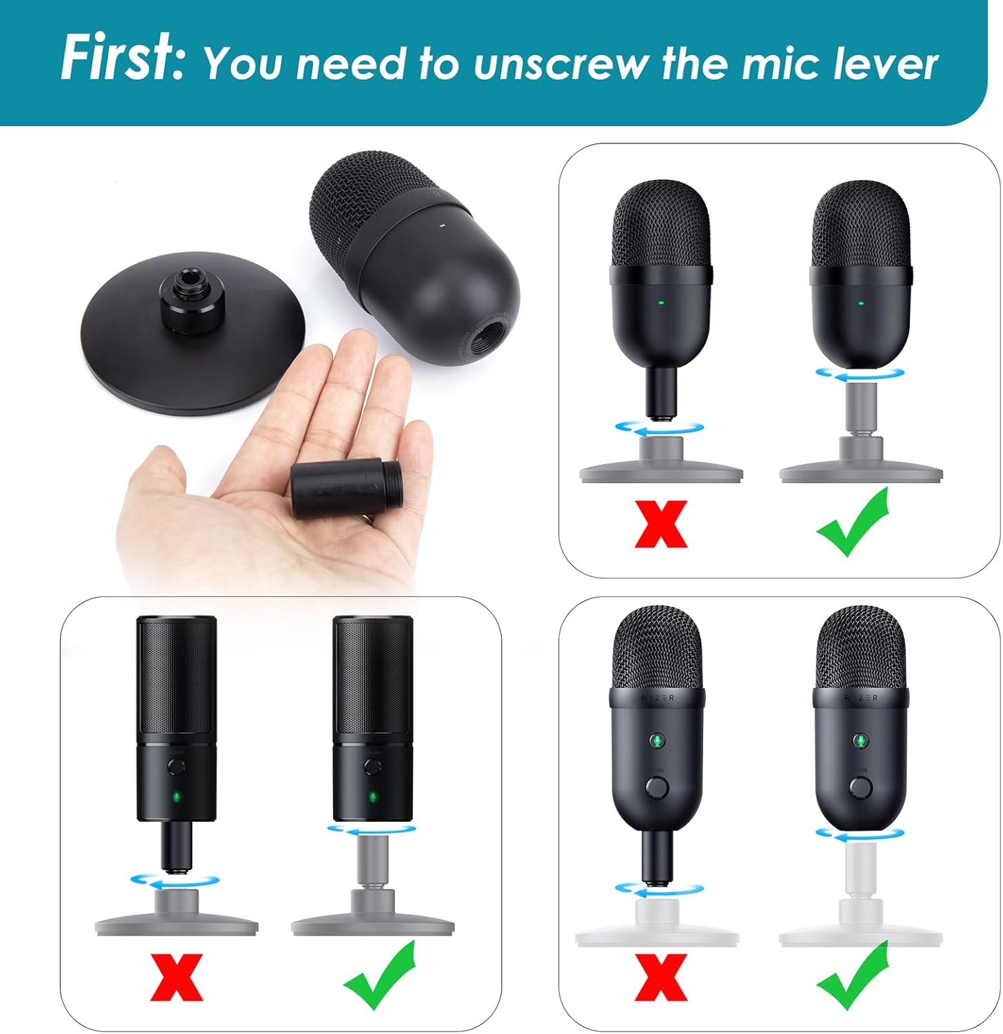 Compatability – Adjustable mic arm compatible with Razer Seiren V2 X, Razer Seiren Mini, Razer Seiren V2 Pro,Razer Seiren Elite and Seiren X. You should take apart the rod on the bottom of the mic for matching the adapter before connecting to the microphone stand.