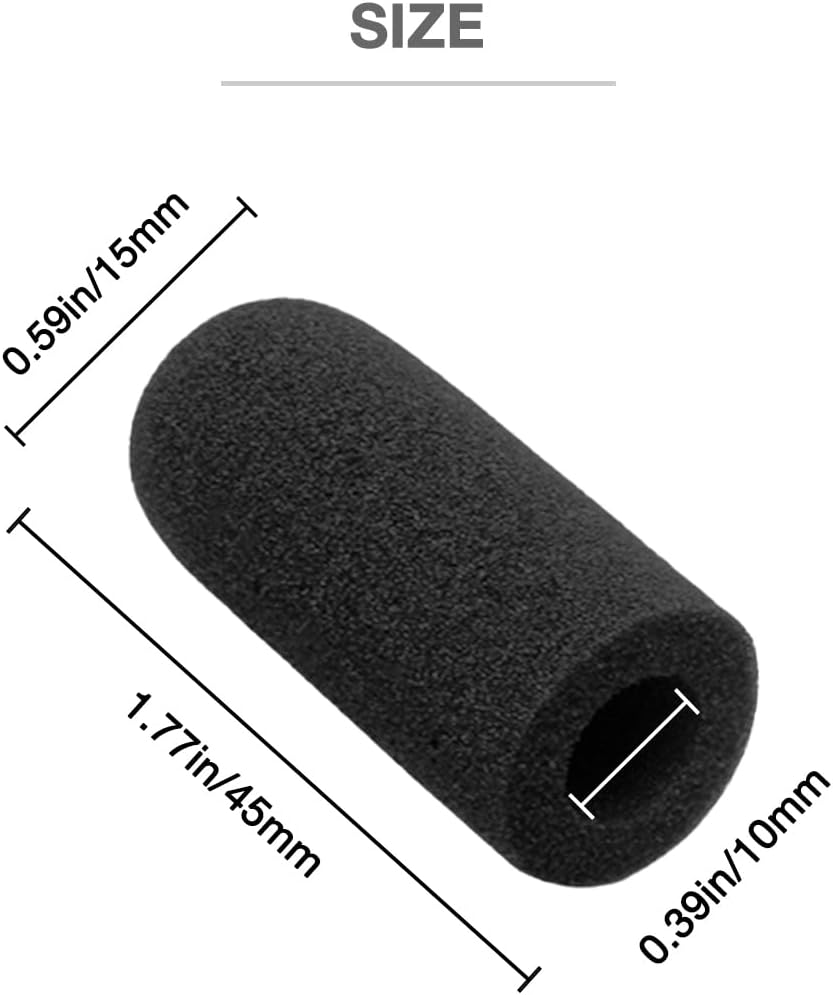 Product description Microphone cover set: 5 pieces foam mic cover, 2.9 x 2.5 inches, caliber size is 1.4 inches, suitable