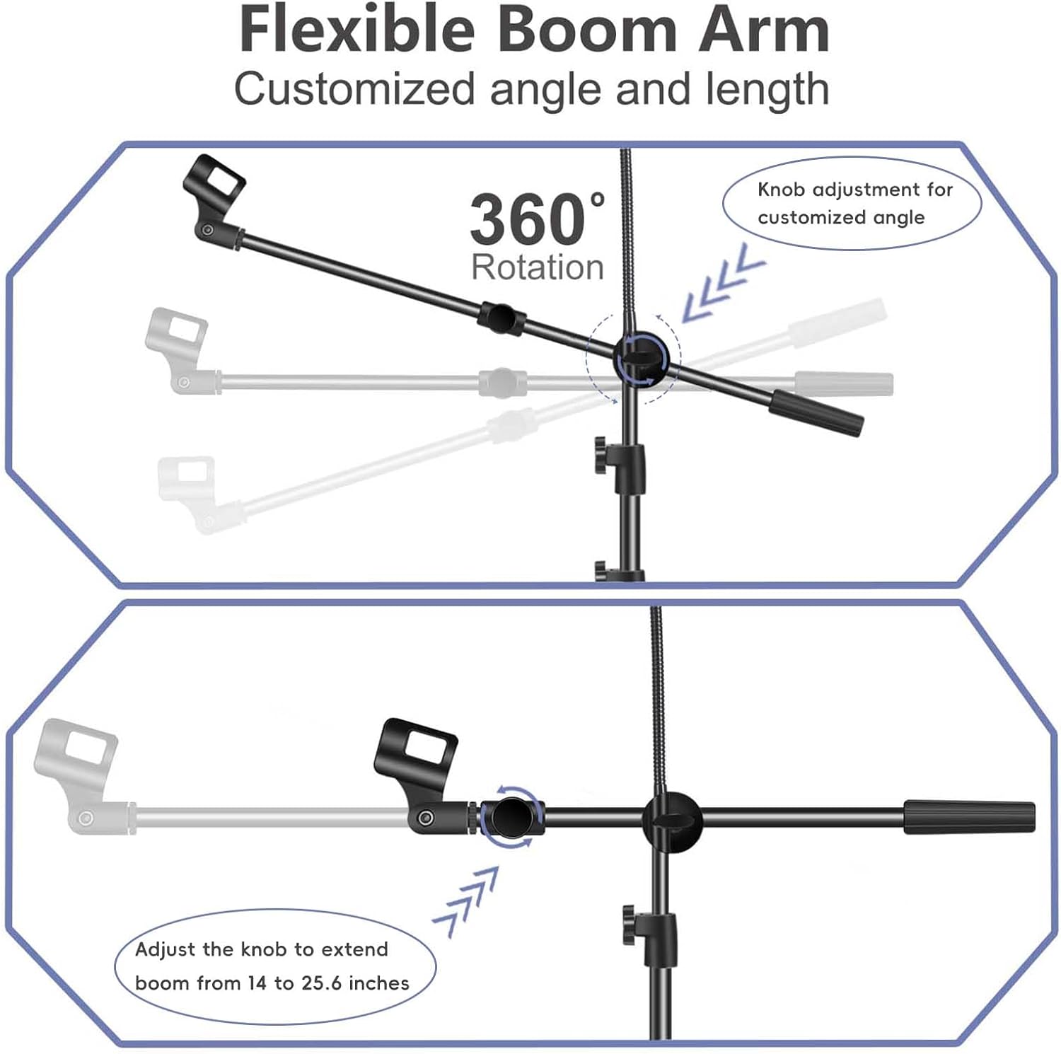 Versatile Mic Stand – This microphone stand is a free combination of boom stand, mic stand and tablet phone holder, providing an all-in-one solution for streaming, recording and live performances. Boom Arm extend from 14 to 25.6 inches.