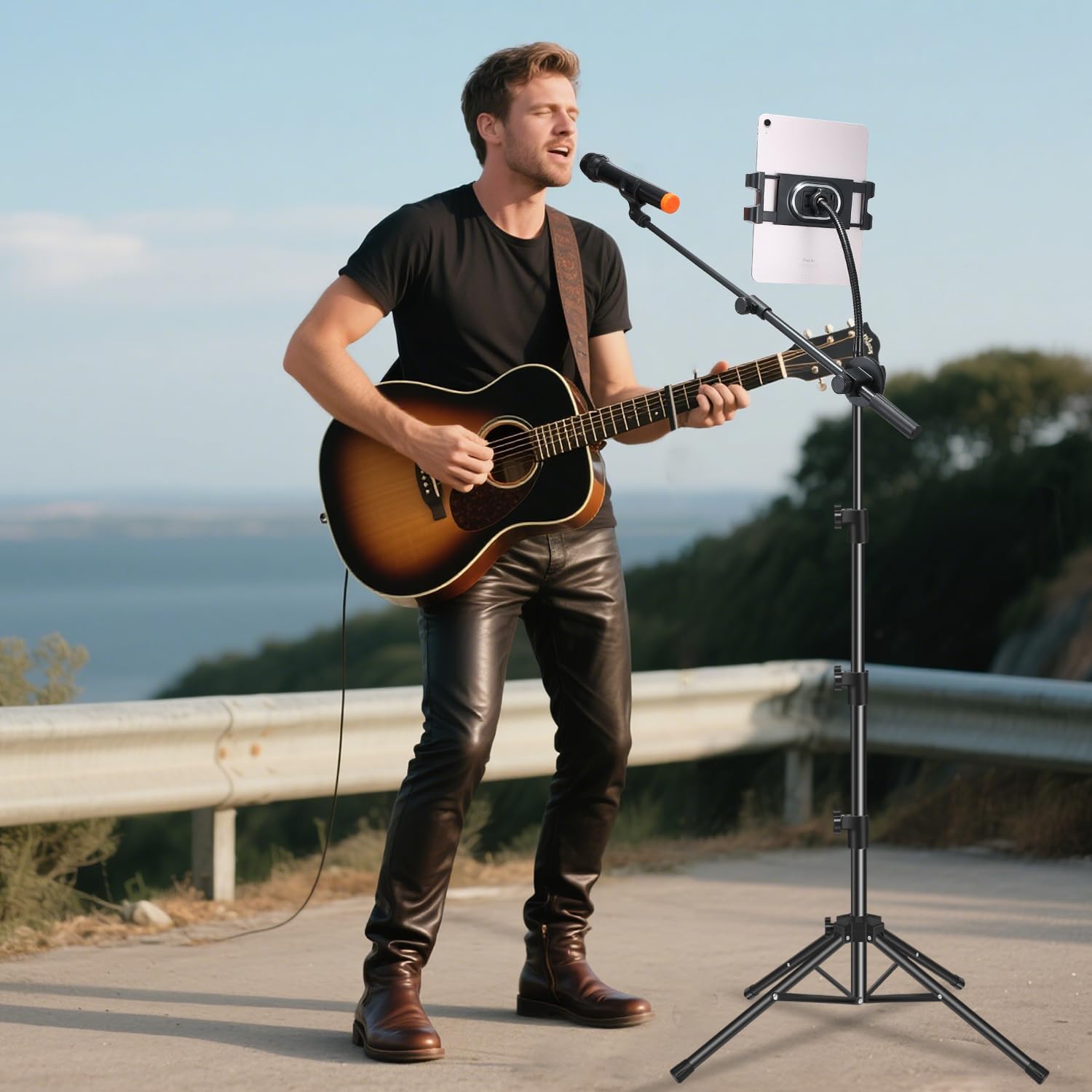2 in 1 Microphone Stand with Tablet Phone Holder