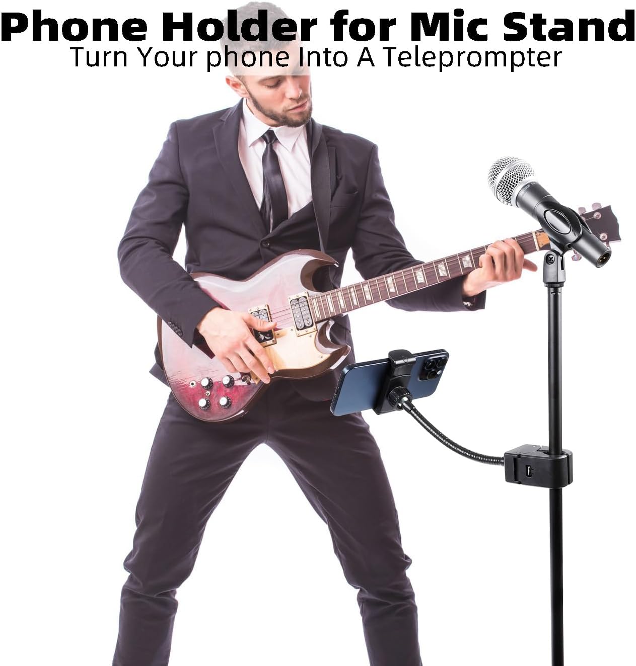 **Versatile Compatibility**: The Mic Stand Phone Holder is designed to fit virtually all smartphones, compatible with iPhone 16 Pro Max, 15 Plus, 14 13 12, Samsung Galaxy, and many others. Whether your phone is in a case or not, this holder ensures a secure and stable fit.