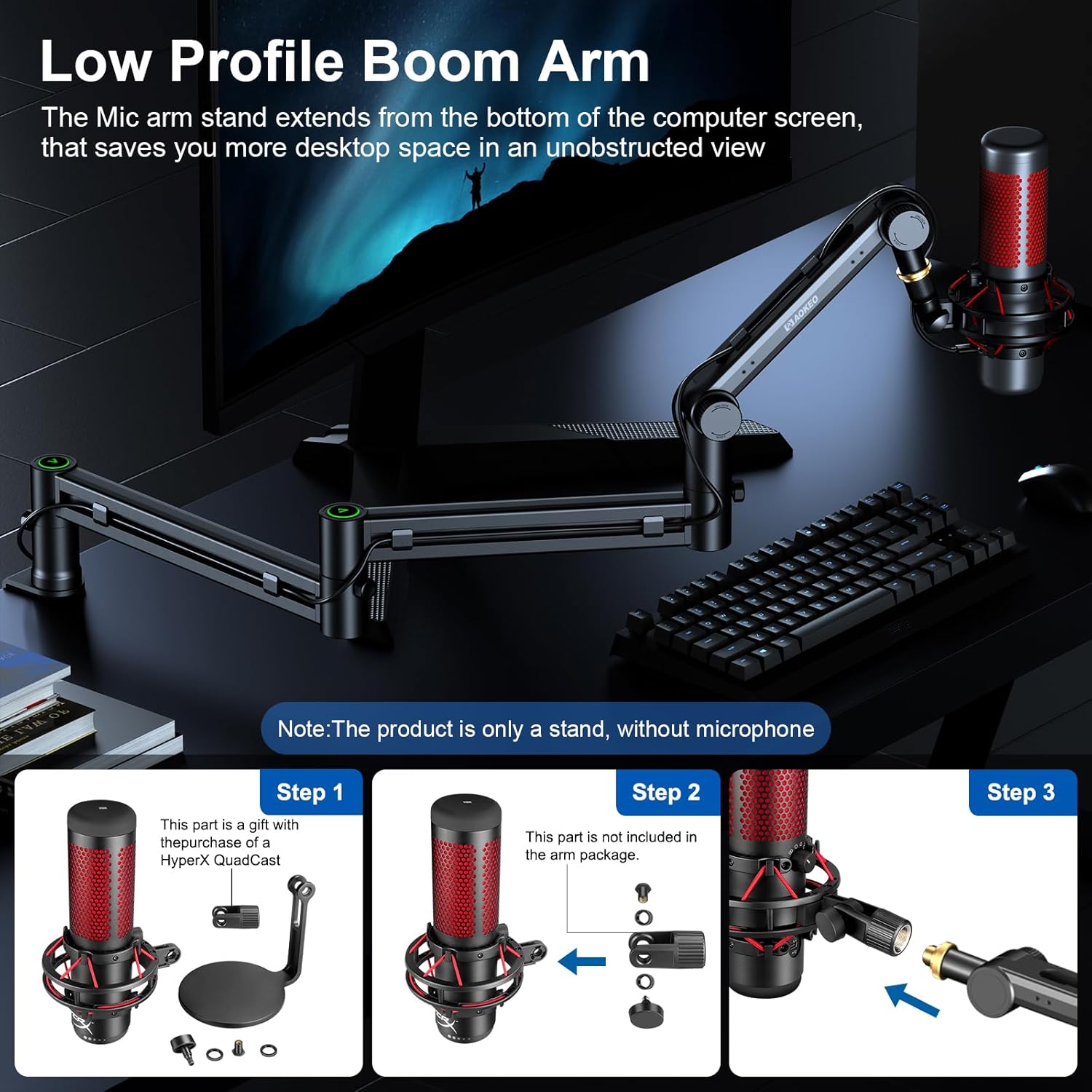 QUALITY ASSURANCE:This low profile mic arm is made of high-quality steel forging, sturdy and durable, and not easy to be deformed or damaged even after long-term use. This product provides one year after-sales service, please feel free to contact us if you have any questions. (Microphone is not included in the package)