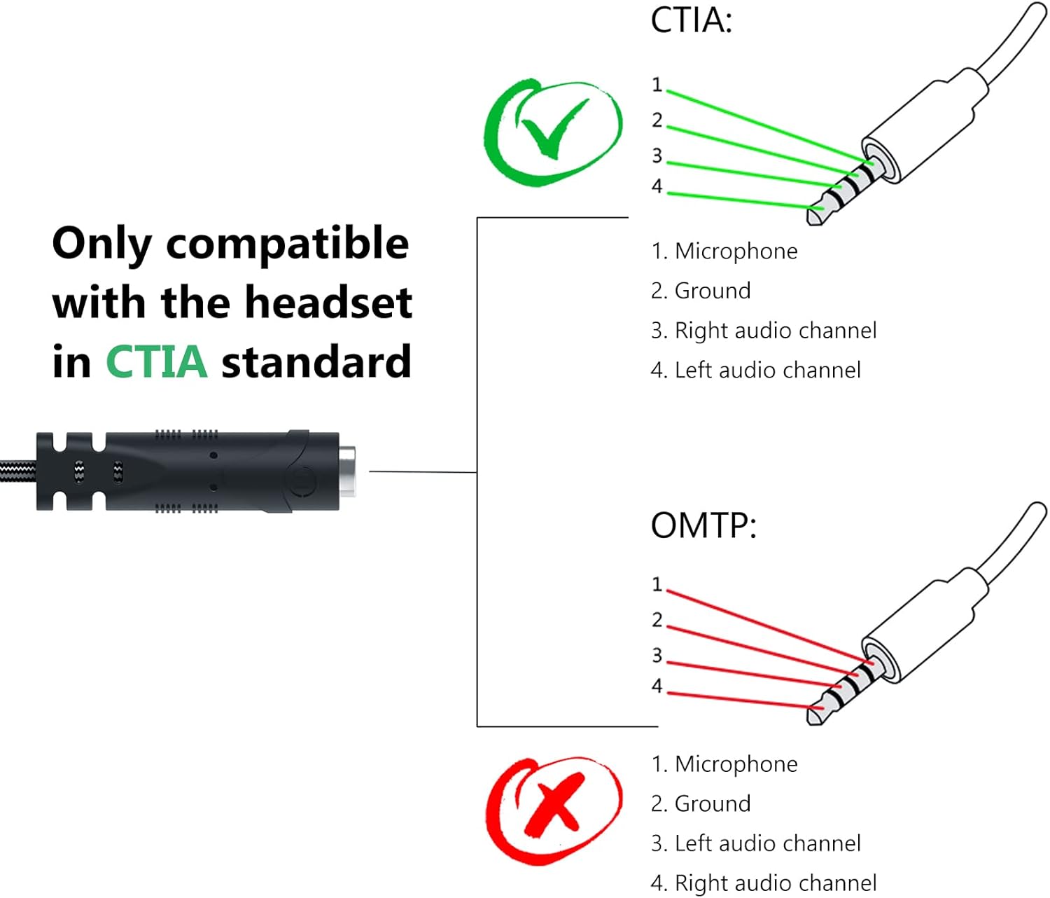 Tip 1 Please refer to the page’s user guide/manual before using the cable. Tip 2 Please make sure you are using a 4-pole single-plug headset with the CTIA standard. Tip 3 If the jack on the front of the computer host is not recognized, please directly switch to the jack on the back of the host and reconnect it or try another dual-plug laptop. Tip 4 If you can’t make sure, send the device’s model, link, or pics to us, and we will help you solve the issue.