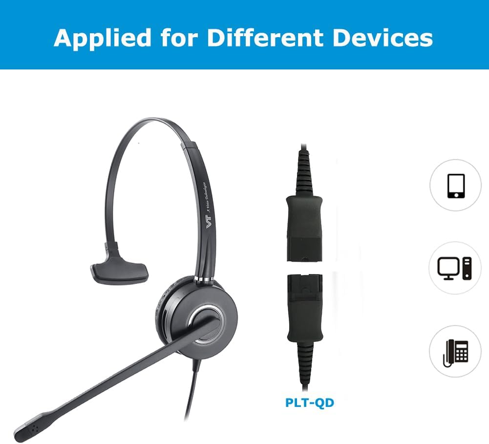 Home Call Center & Office Accessories Amplifiers Mono Plantronic-QD Headset with Microphone – for Cables with Quick Disconnect Connector for Call Center Office (VT6932QD)