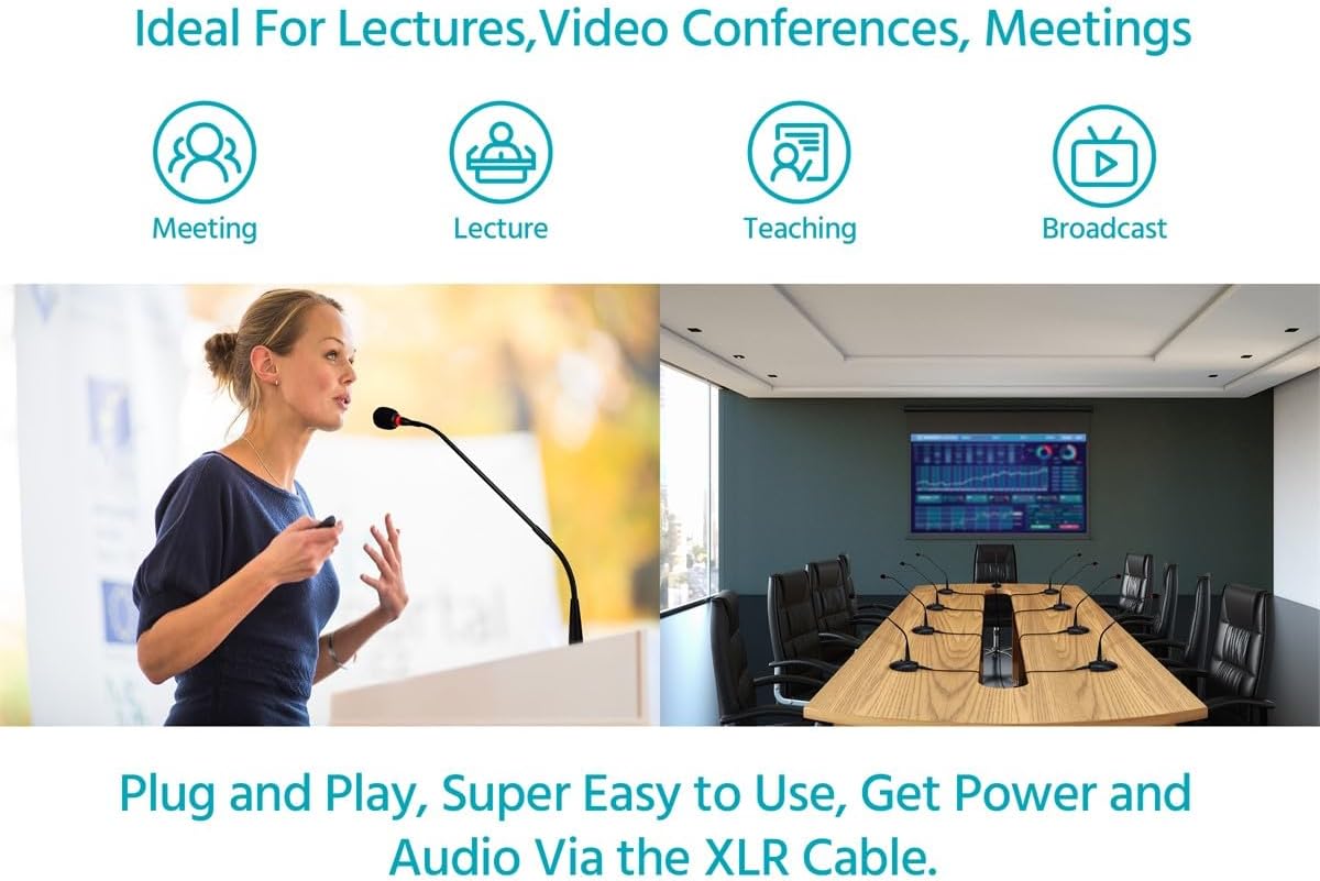 Flexible metal gooseneck design allows precise microphone positioning for optimal sound quality. Lightweight 1.76-pound design and 16.14-inch length make it ideal for conference rooms, broadcasts, and presentations.