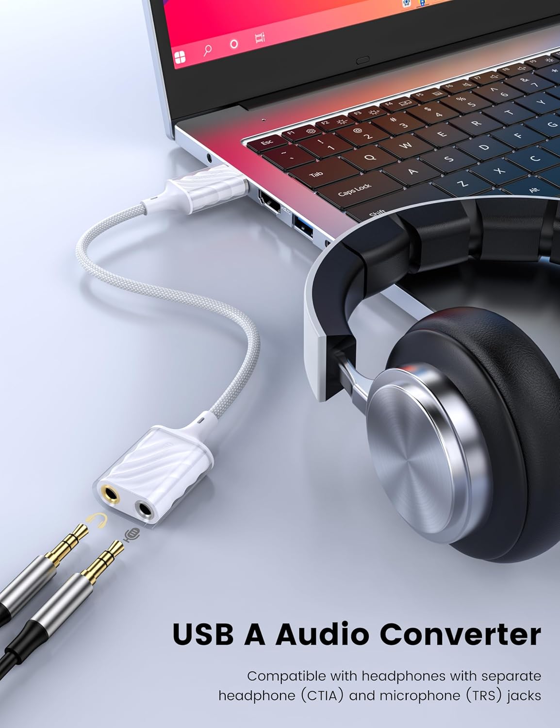 【Premium Materials】The MOSWAG USB To TRS 3.5mm Headphone & Mic Adapter features a sturdy nylon braided exterior for maximum durability and wear resistance. Designed to withstand frequent use while maintaining peak performance.Its high-density shielding protection ensures high stability sound transmission and a soft touch. Nickel-plated USB has good heat dissipation, ensures stable and speedy signal transferring, and offers a long lifetime.