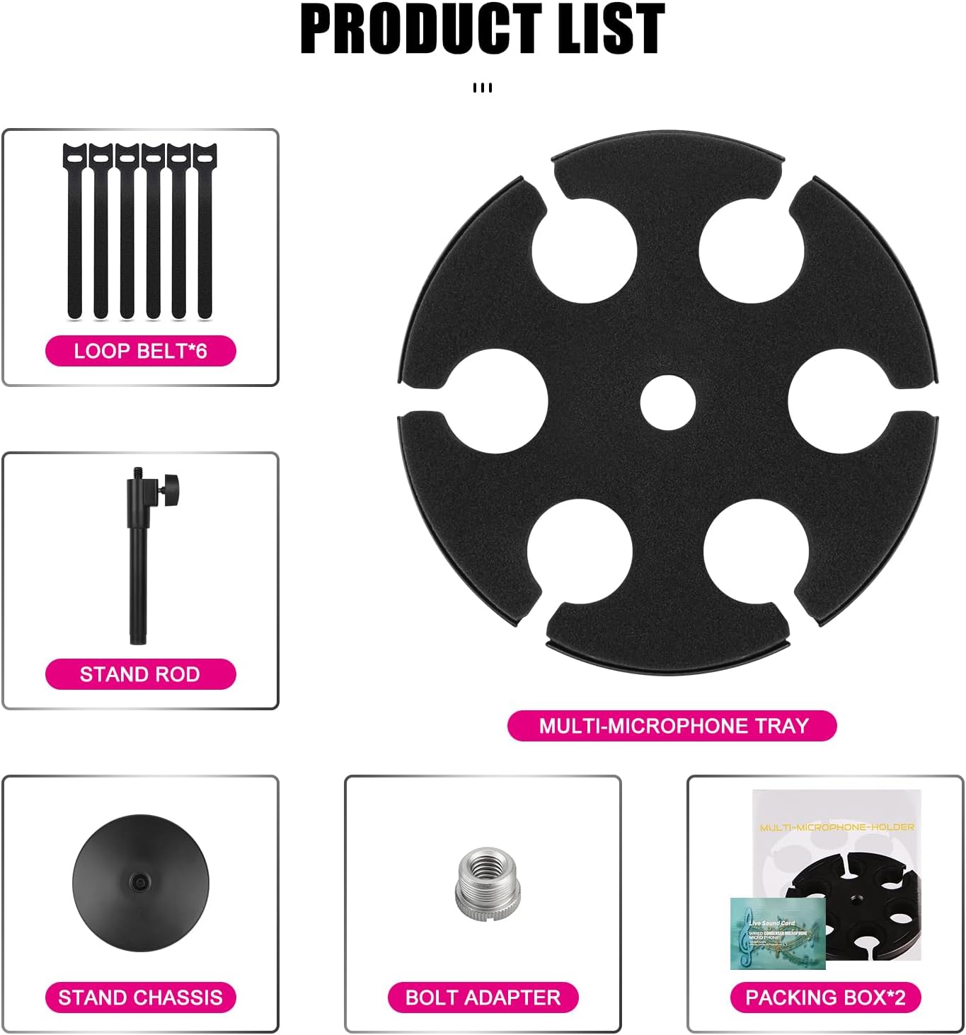 Multi Microphone Holder, Wired and Wireless Mic Holder for Stand, Hold Up to 6 Microphones, Aluminum, Black with stand (Desk)