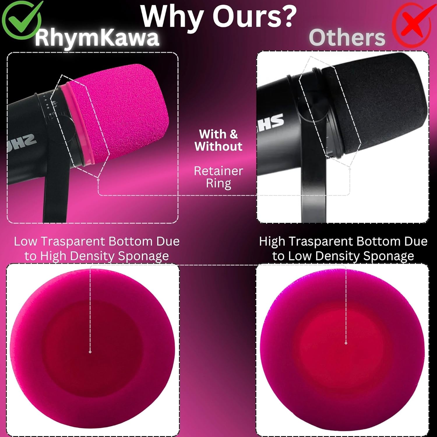 MV7 Pop Filter for Shure MV7, MV7i, MV7+, MV7X, Microphone Windscreen Cover Replacing, Colored Pink, Purple, Red Foam and Retainer Ring (Pink)