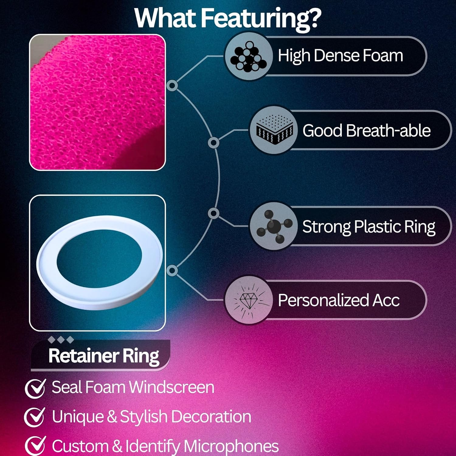 MV7 Pop Filter Replace for Shure MV7, MV7i, MV7+, MV7X, Microphone Windscreen Cover, Pink with White Retainer Ring