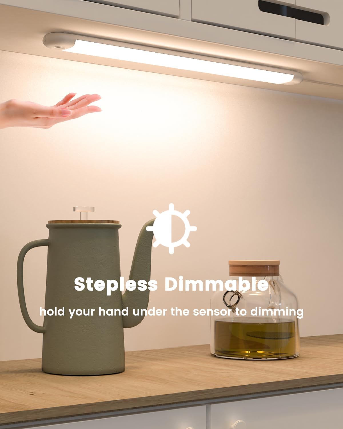 【Hand-wave Sensor Activation】 – Easily activate the cabinet lights with a simple hand sweep. When you are handling food or have wet hands, you can turn on the lights with a touchless sensor.