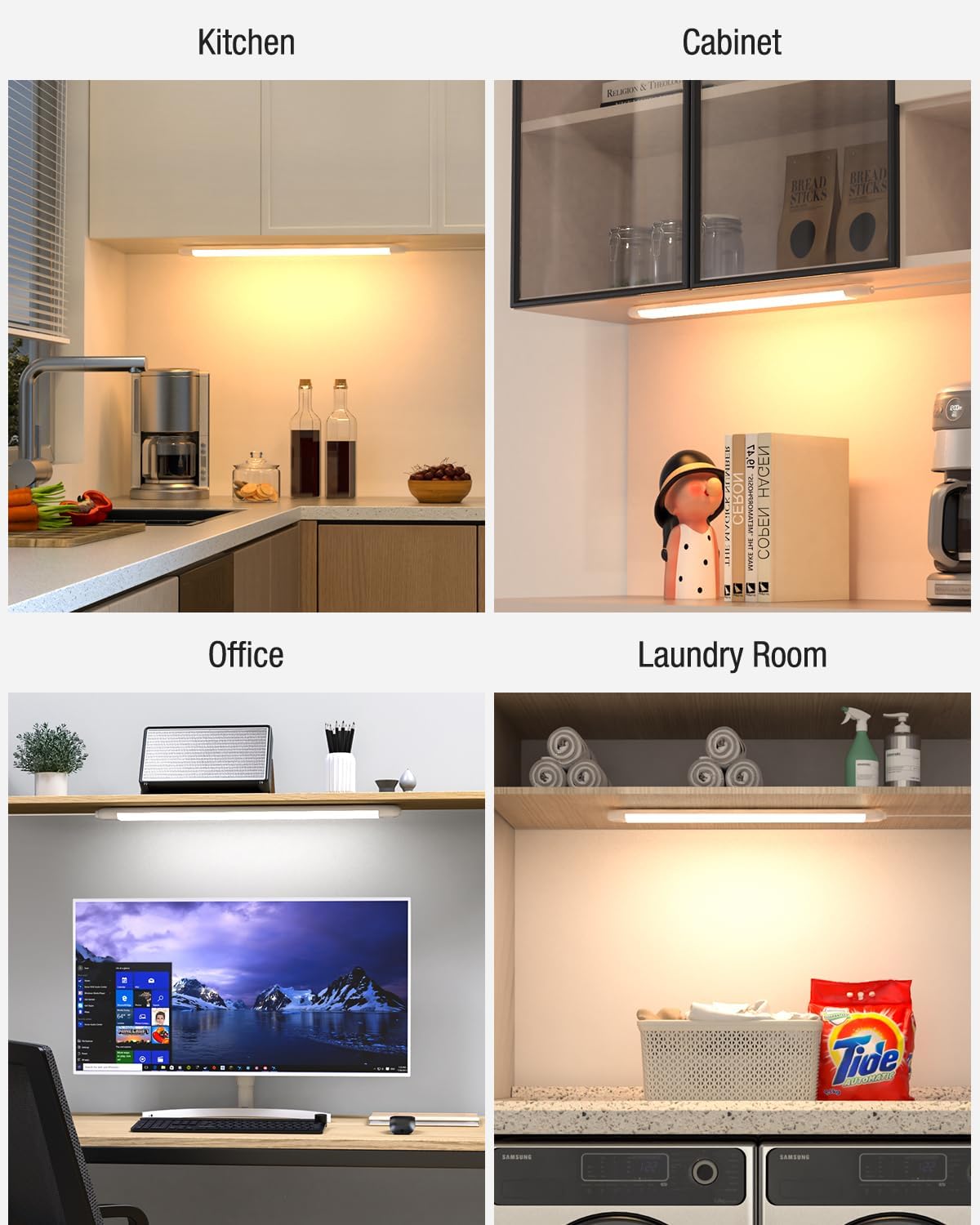 【Versatile Use】 – This under-cabinet light is ideal for a variety of applications, including kitchens, offices, garages, desks, storage rooms, laundry rooms, workbenches, and closets. It provides clear and bright illumination wherever you need it.