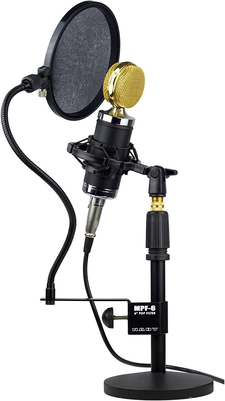 Nady 6-Inch Clamp On Microphone Pop Filter Wind Screen with Flexible Gooseneck and Metal Stabilizing Arm (SPF-1)