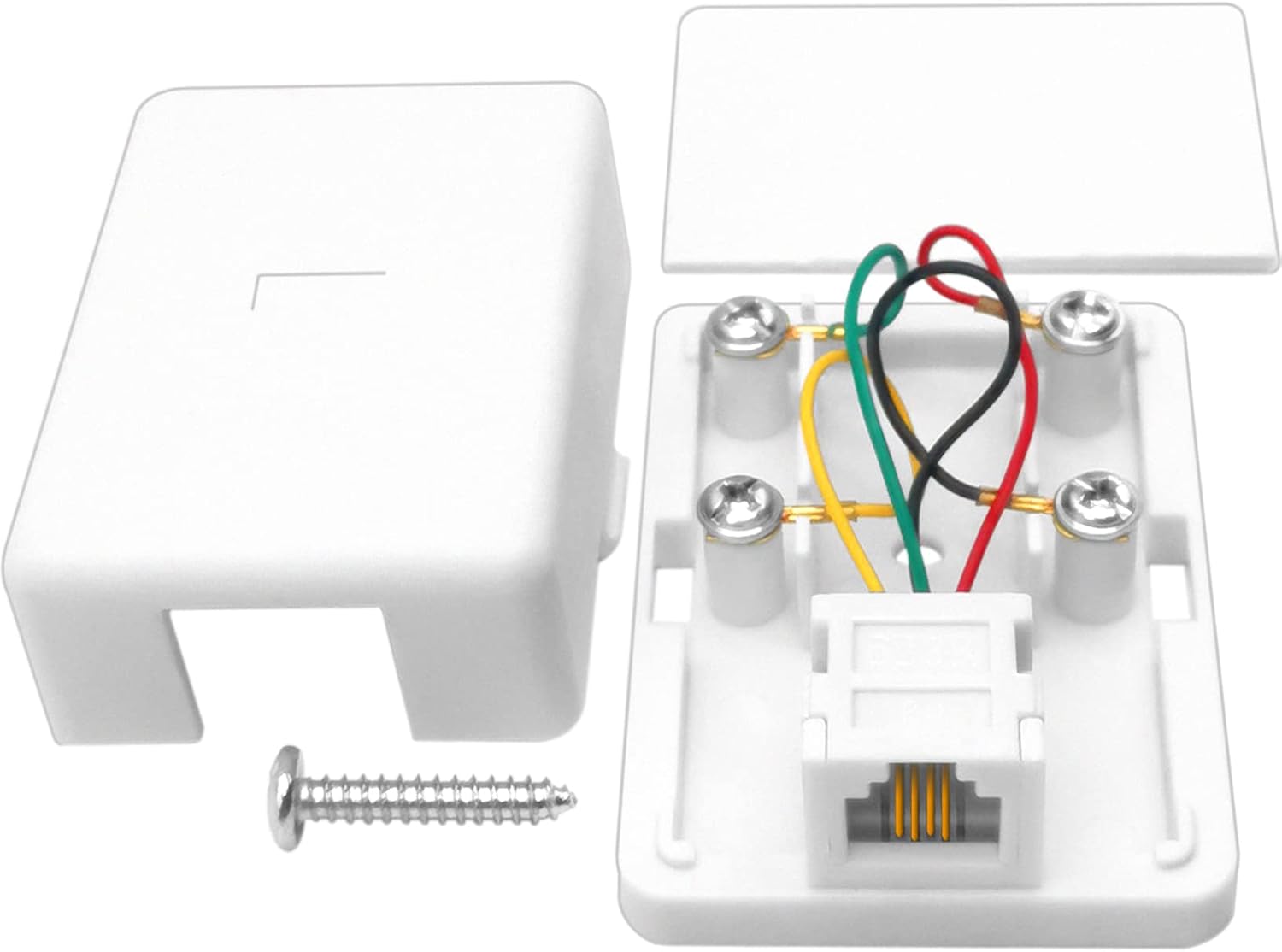 ★ Single port surface mount phone jack white, 4 screw terminals inside for wire termination