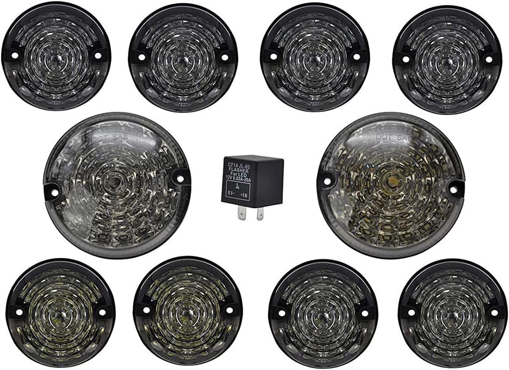 Features: 1.Smoked Lens led update light kits include:95MM diameter(reverse lights/back-up lights, rear fog lights);73MM diameter(front & rear indicator lights, rear stop/tail lights, front position lights);33 PCS highly quality white SMD LED for rear reverse light,33 PCS high quality Red SMD LED for rear fog light, 21 PCS high quality Amber/white/Red SMD LED for indicator/position/tailights