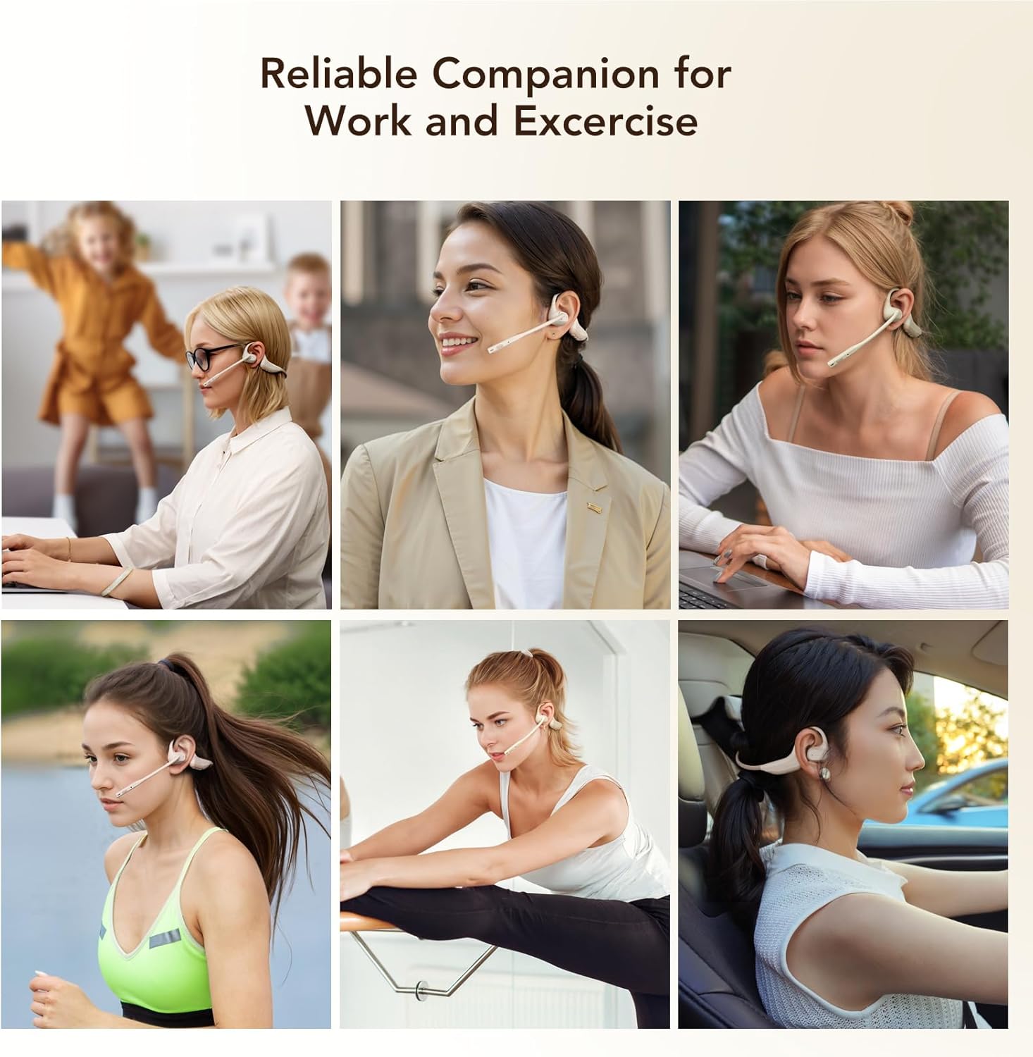OW20B Open Ear Headphones with Mic, ENC Noise Cancelling Microphone Headset for Work Business Trip