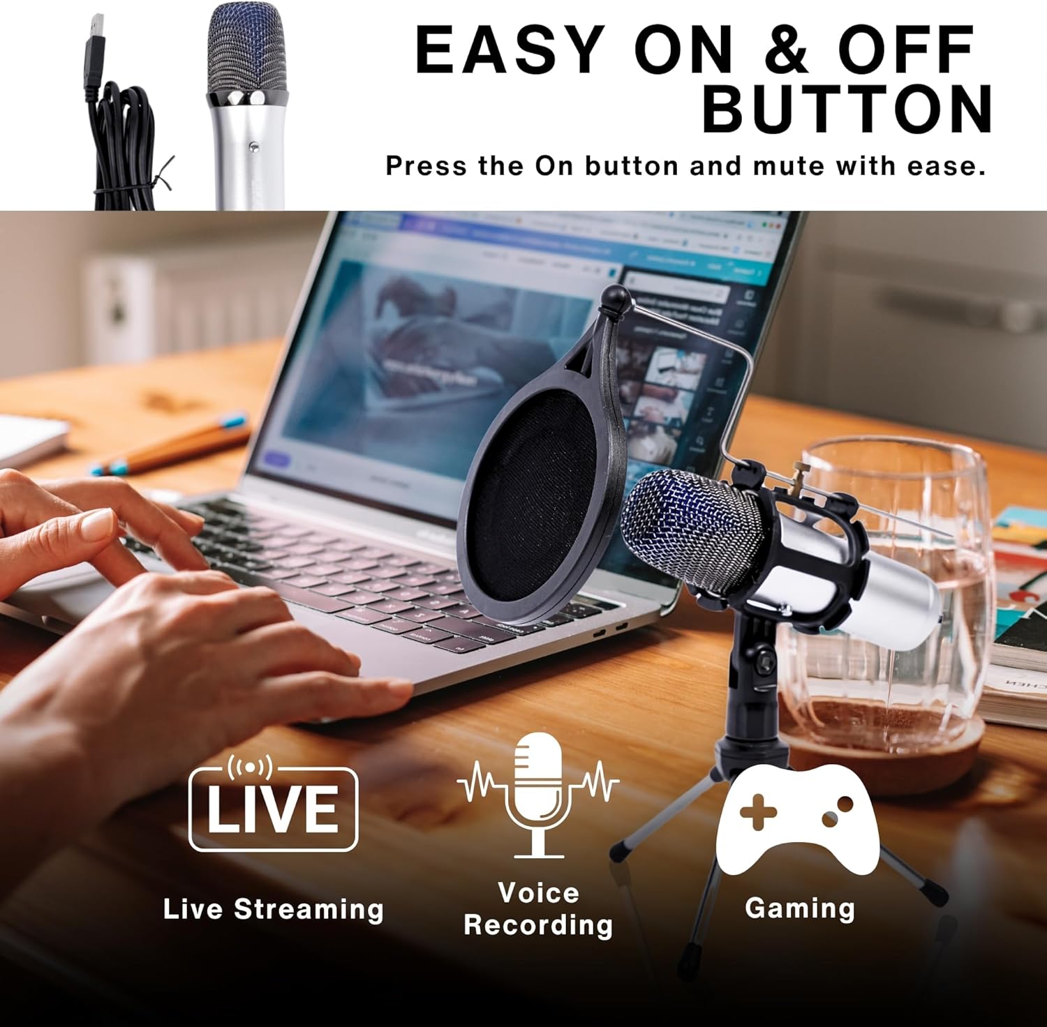 PERFECT FOR MULTIPLE APPLICATIONS: Ideal microphone for podcast, streaming, voiceovers, online meetings, and gaming. Our versatile condensor microphone meets the needs of professionals, students, and gamers alike. You will get (1) USB Microphone for Gaming with (1) shock mount, (1) foldable mic tripod, (1) pop filter with stainless holder stick, and (1) manual.