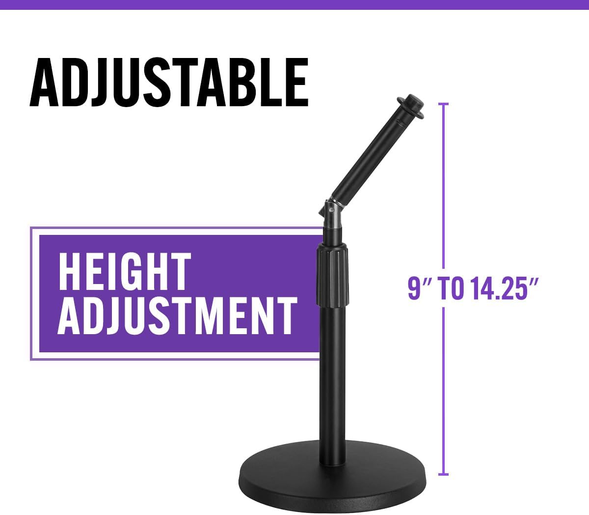 Compact. With its compact size and lightweight construction, this desktop microphone stand is highly portable, making it ideal for musicians, podcasters, broadcasters, and other on-the-go professionals.