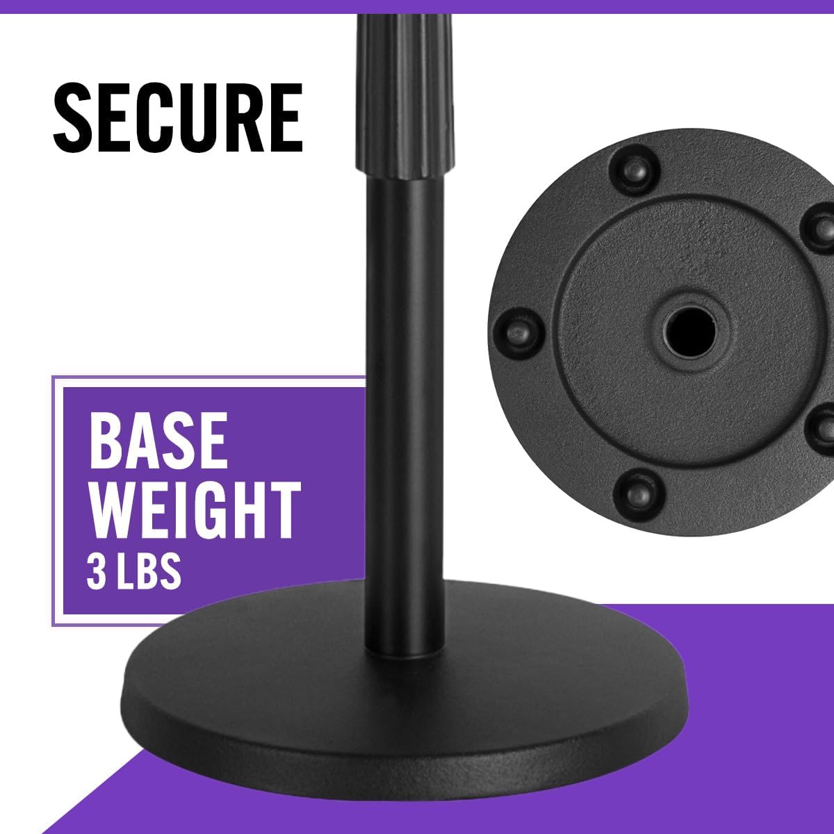 Grip. The non-slip rubber feet at the base of the stand provide added stability and prevent unwanted movement or slipping, ensuring secure and steady microphone placement.