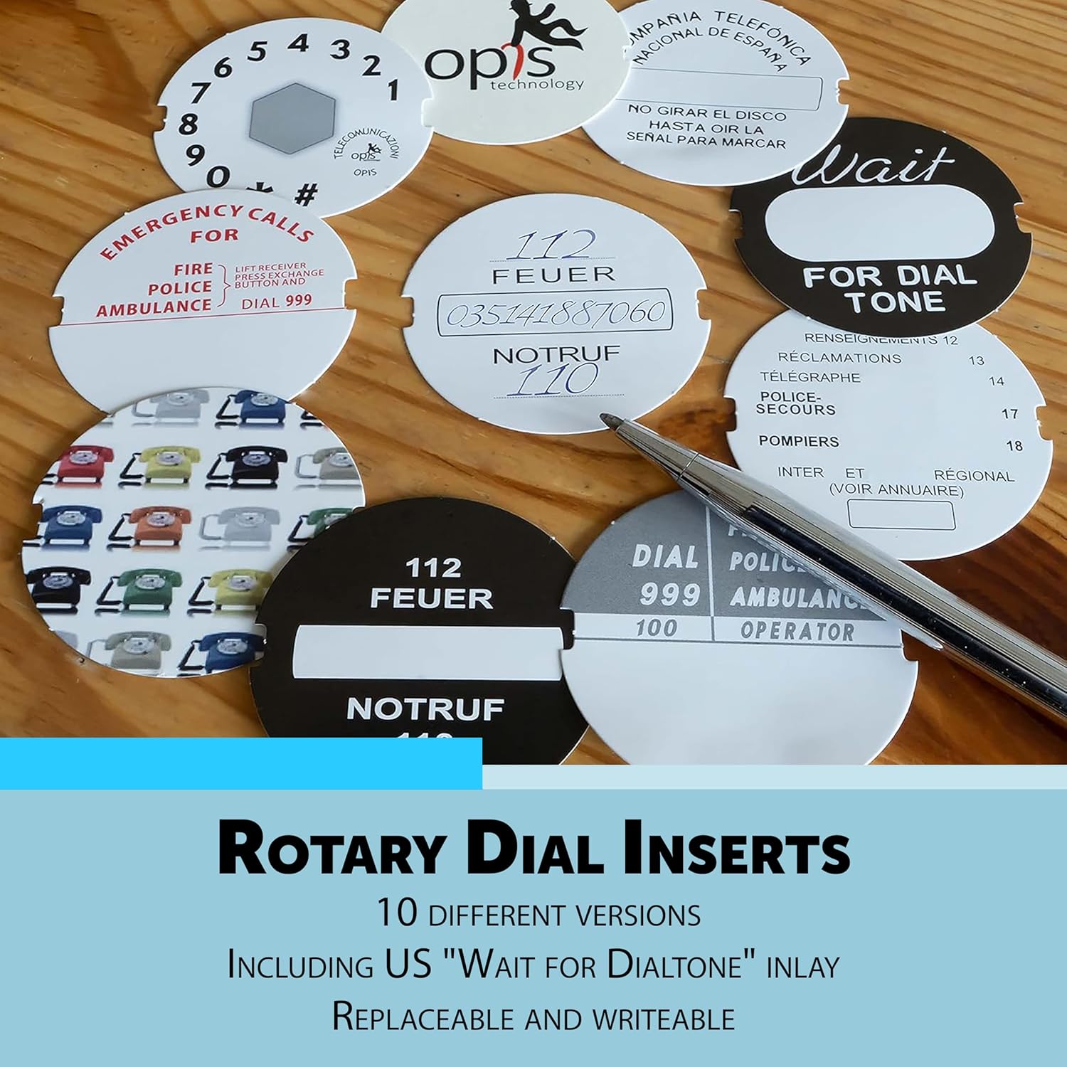 The Opis 60s cable is a retro-styled 1960s-design rotary phone. You dial exactly as you would have done in the 1960s, thanks to the cleverly designed mechanical rotary dial. A mechanical bell creates the authentic ring tone. The high-quality microphone and speaker in the classical receiver handset assure excellent voice quality. Phone banking and menu control are fully supported with additional * and # holes. The phone comes with a US-RJ11 cable, so that you can start using it immediately.