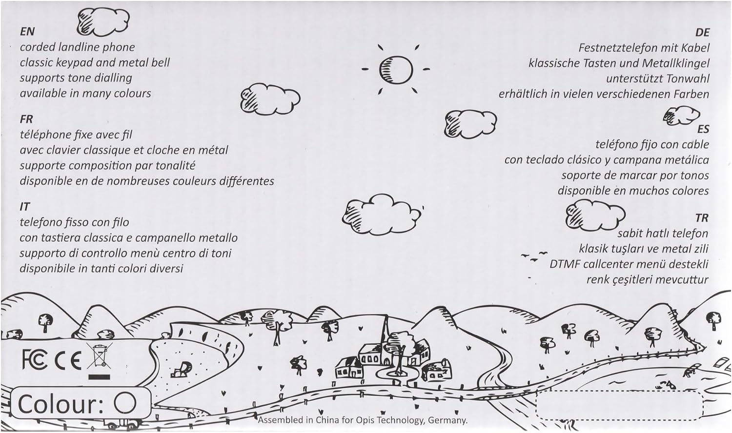 Opis PushMeFon landline telephone telephone cable with interntional RJ11 plug telephone cable adapters for Germany, France, UK Dimensions length: 23 cm width: 22 cm height: 13 cm weight: 0.9 kg Downloads quick instructions sheet
