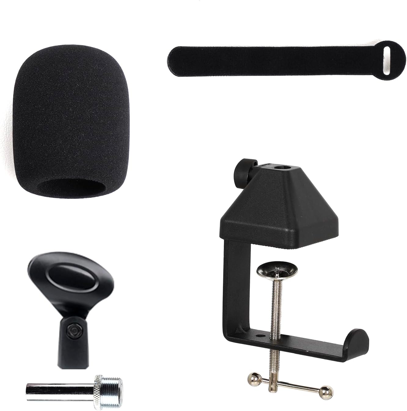Package Include: Boom arm*1 Desk clamp*1 Mic clip *1 Pop filter*1 Foam cover*1 Cable tie*4