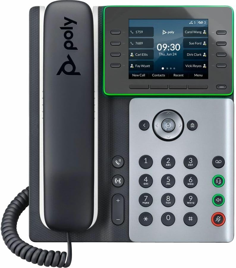 Overview | A phone with high standardsEasy to use and packed with features, the Poly Edge E300 Series pairs Poly noise reduction technology with cutting-edge design. Whether you’re hot-desking at work or calling from your home office, these phones bring style to any desktop.The new office standard This versatile phone is outfitted with a bright 3.5-inch color IPS LCD display and shows your lines, features, contacts, and speed dials. What’s more, the Poly Edge E300 Series is designed to handle up to 32 lines to be more productive.Enterprise-quality sound The Poly E300 Series offer quality audio with Poly HD voice. They reduce noise and distractions with Poly NoiseBlockAI and Acoustic Fence technologies.Integrated protection Rest assured that your devices, enhanced with Microban® antimicrobial product protection, stay cleaner, fresher, and more durable for longer. Protection that lasts the life of the product, actively reducing the growth of bacteria 24/7.Features | All the features you could ask for Get fast access to features via the 3.5″ color display with a surround light status indicator and soft keys under the display. 8-line keys support up to 32 lines and contacts. A new pagination key brings additional lines/contacts into view.Versatile connectivity Enjoy better connectivity with two high-speed GigE PoE Ethernet ports for the LAN connection to your IP phone with a passthrough connection to your PC. And a Poly headset for your workstyle: Bluetooth®, USB, RJ9, or Electronic Hook Switch.Perfectly paired Integrated Bluetooth® 5.0 gives you freedom to move about the office with your Poly Bluetooth® headset and answer your mobile phone calls from your desk phone. Fast pairing on selected Poly headsets makes connecting your headset easy.Accessibility is keyEnhance the user experience with phones that sound great and are more efficient. Features like im