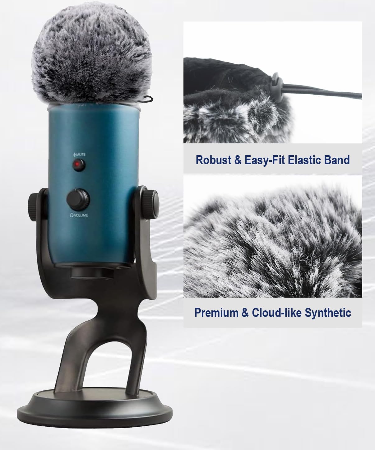 • Pop Filter for Blue Yeti Mic, Gray Furry Microphone Cover, Fuzzy Mic Sleeve for Blue Yeti, Anti-Pop Air Protection