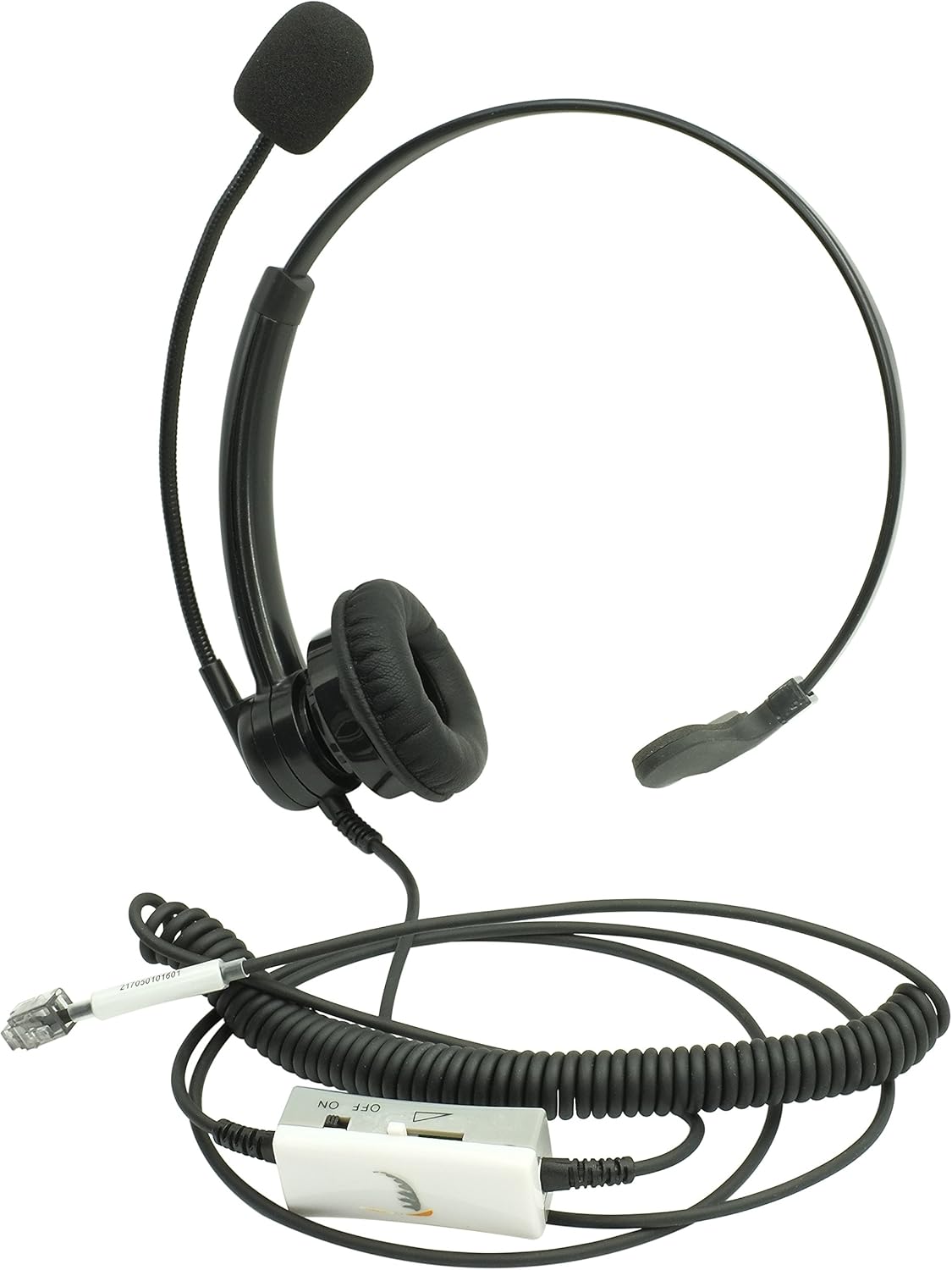 Arama Corded Telephone Headset Mono w/Noise Canceling Mic for Polycom Mitel Avaya Aastra Allworx Adtran Alcatel Lucent AltiGen Comdial Digium Gigaset InterTel Plantronics Landline Deskphones(A800S1)