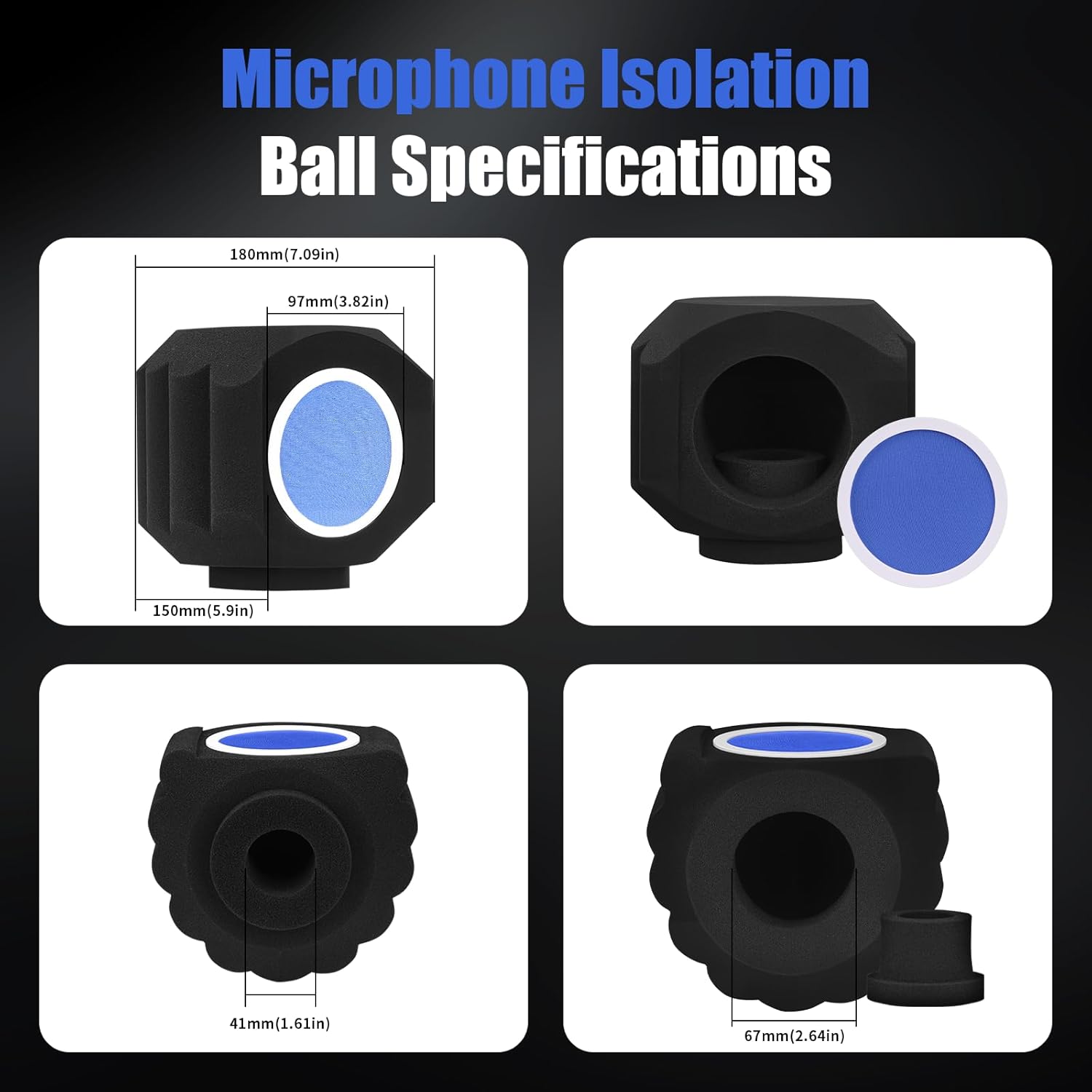 Wide Application: The microphone isolation ball is suitable for most condenser microphones and USB microphones, and is compatible with microphones with a diameter range of 40-70 millimeters.