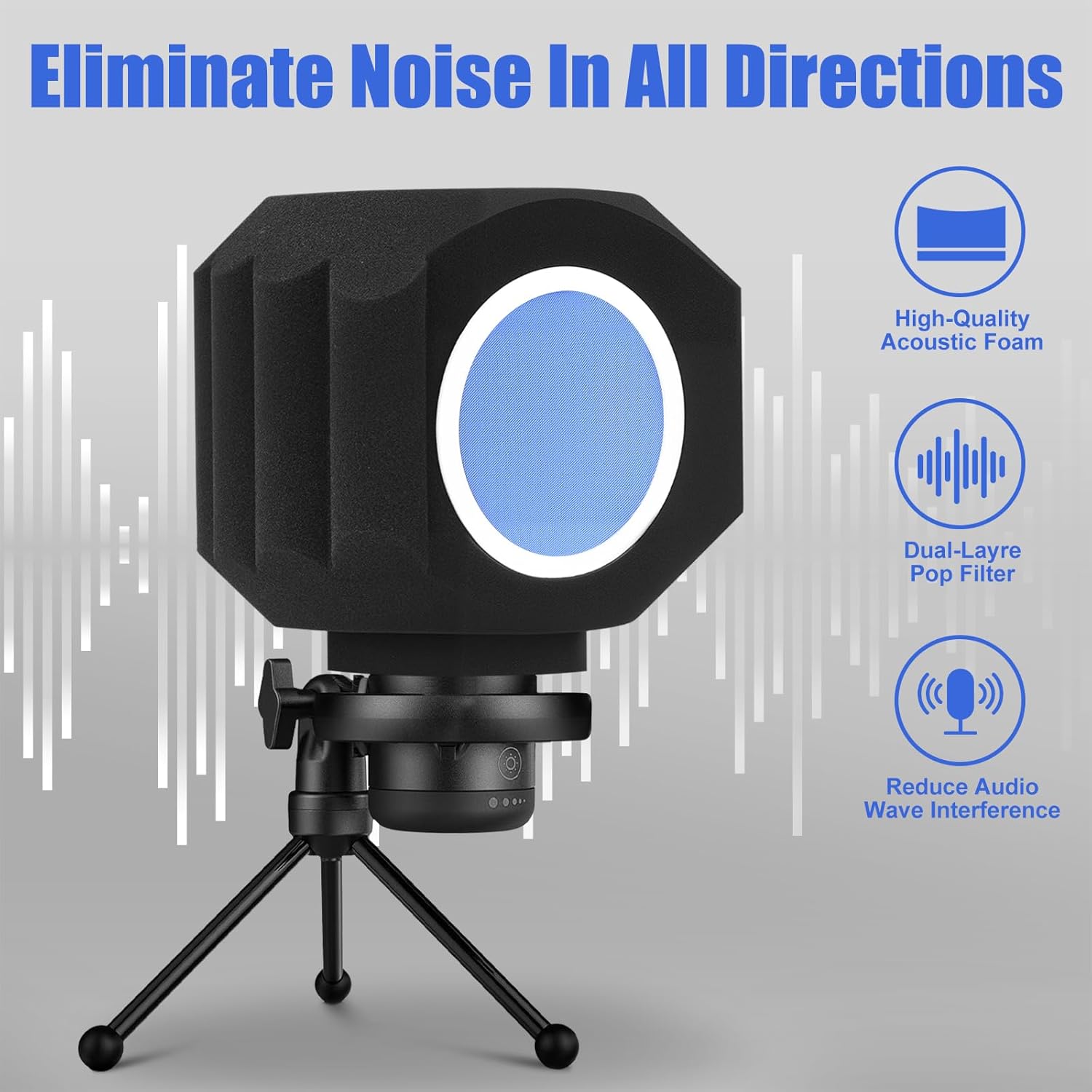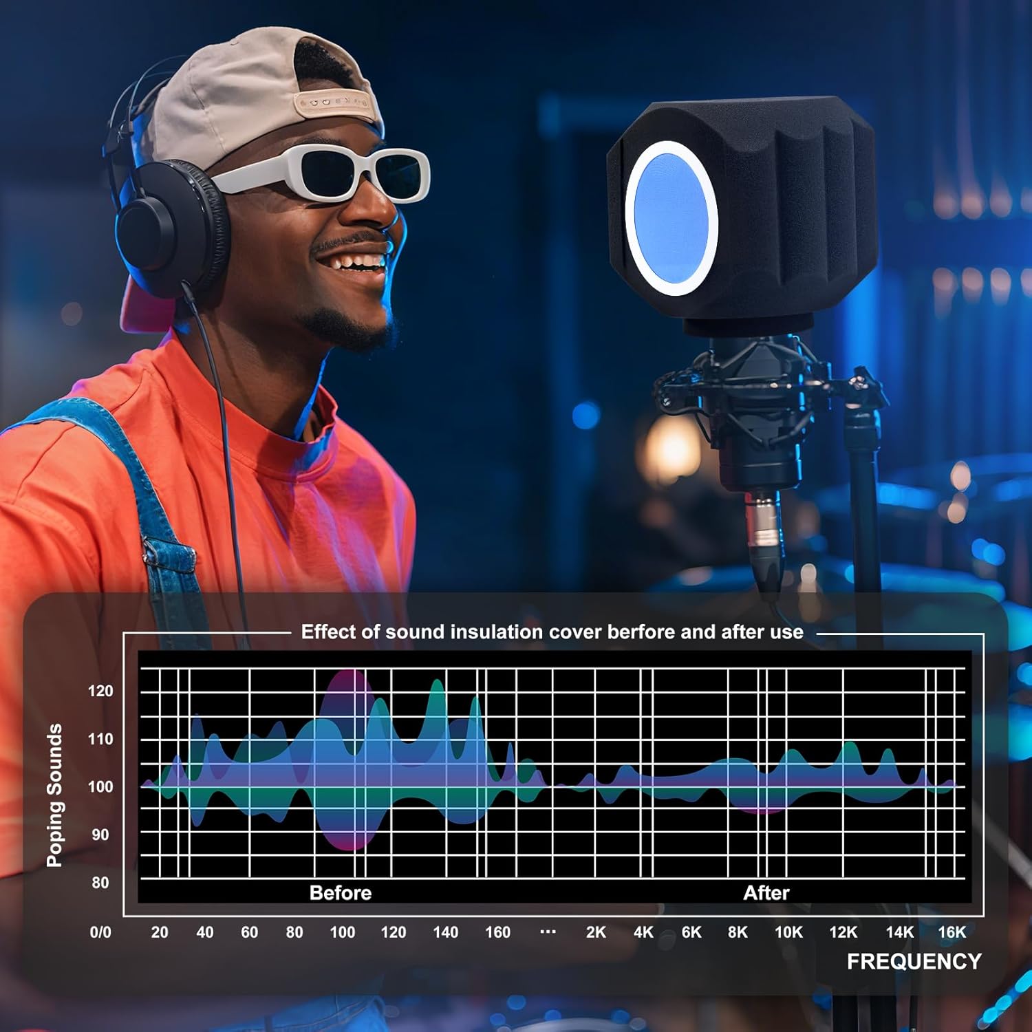 Five Side Noise Reduction: The microphone isolation shield utilizes high-density, durable acoustic foam to perfectly filter and absorb unwanted noise and reflections, delivering optimal noise reduction for a quiet recording environment.