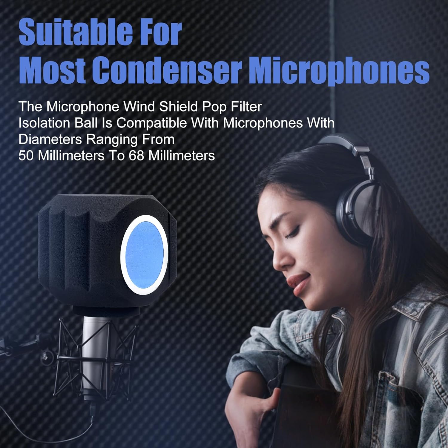 Professional Pop Filter Isolation Ball For Microphone,Microphone Isolation Ball Effectively Reduces Noise And Reflection(Double Layer Filtration, Blue)