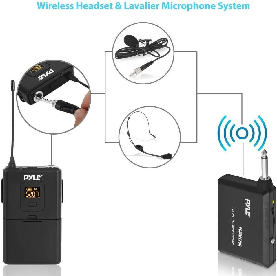 System Set with Headset & Lavalier Lapel Microphones, Beltpack Transmitter, Clip on Lavalier Mic & Receiver – Perfect for Karaoke & Conference – PDWM12UH