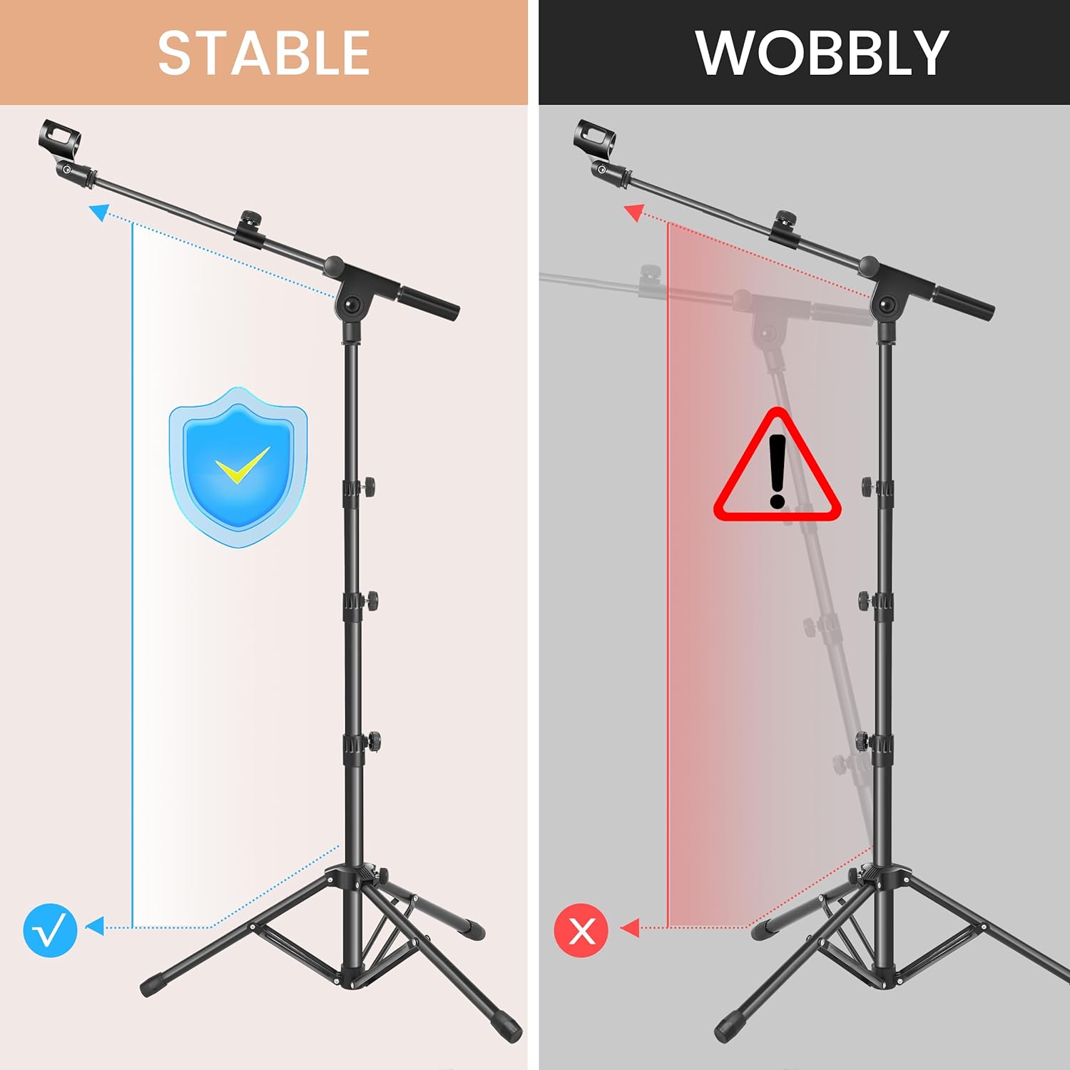 Dual Support Tripod Music Stand: The Ramzi microphone stand features an innovative dual support tripod construction that increases the stability of the music stand and holds the microphone securely in place; The non-slip feet prevent it from moving around