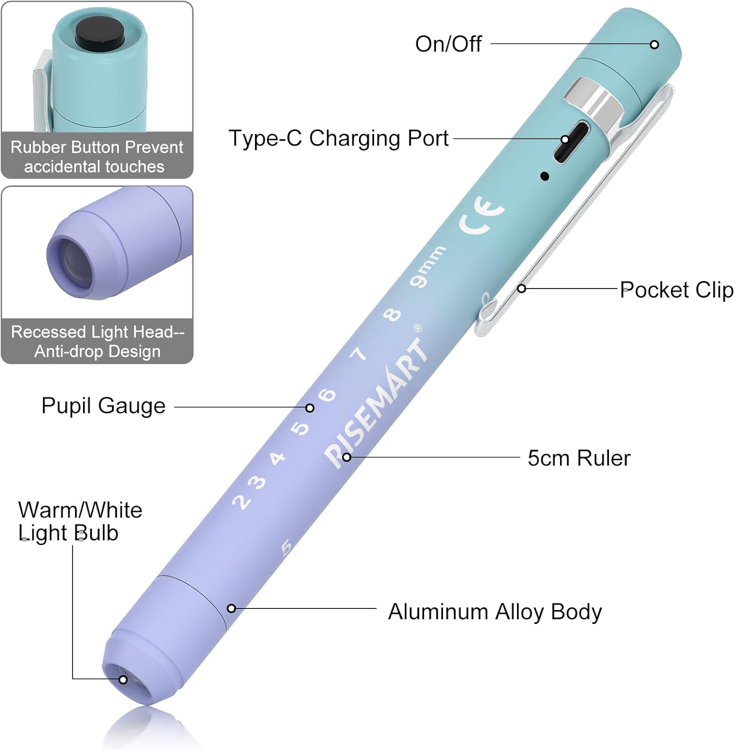 RISEMART Upgraded Medical Penlight, USB Rechargeable & Dual-color Light Why Choose RISEMART Pen light?