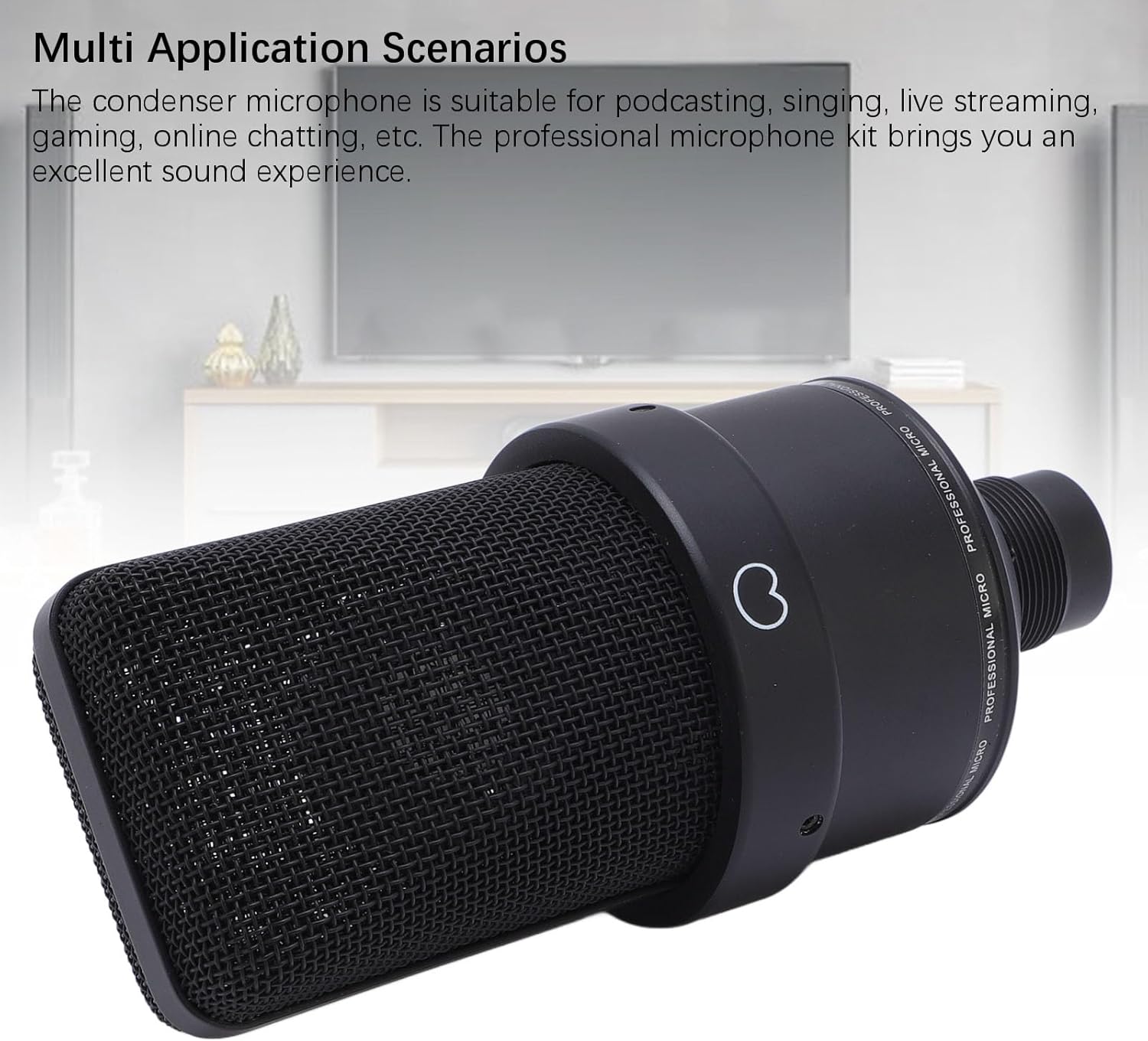 3. Multi Application Scenarios: The condenser microphone is suitable for podcasting, singing, live streaming, gaming, online chatting, etc. The professional microphone kit brings you an excellent sound experience.